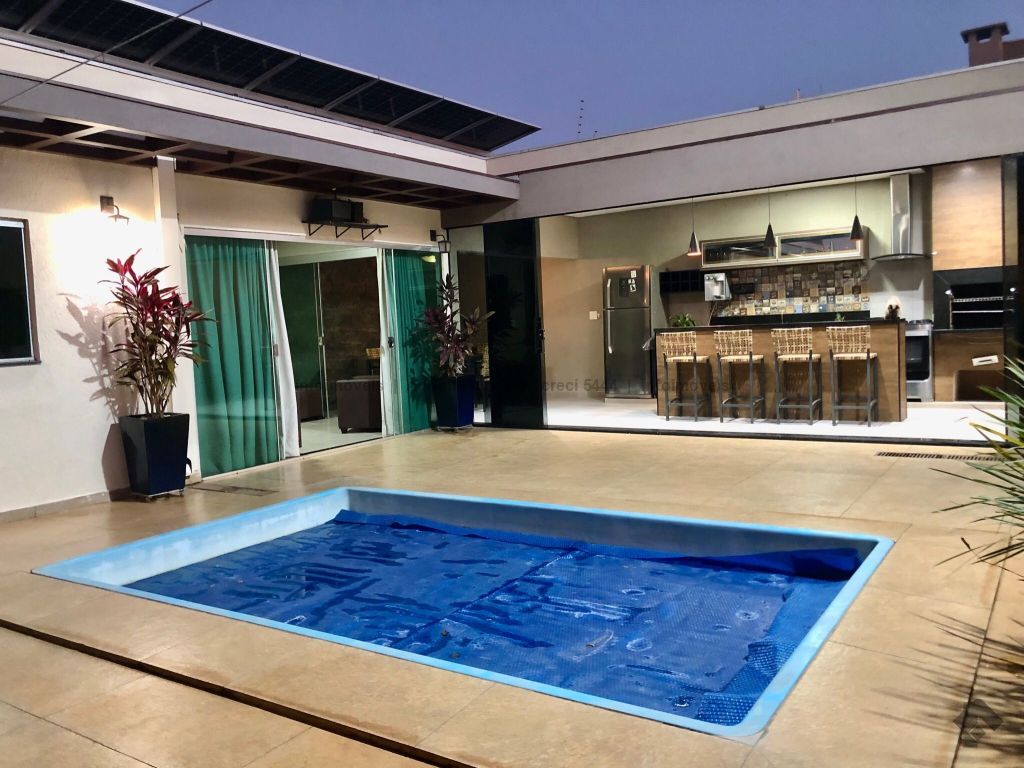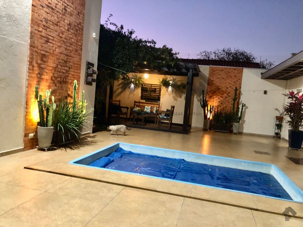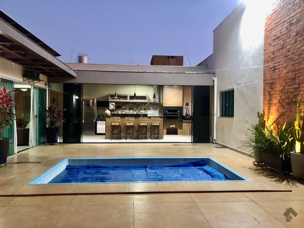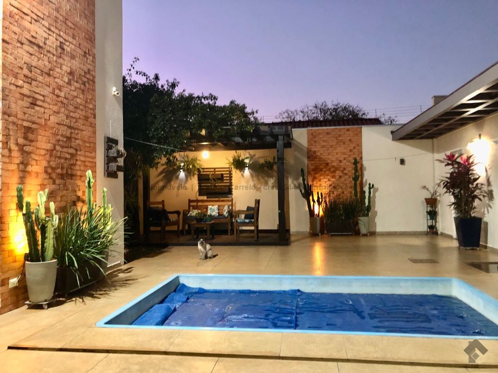 Casa aconchegante, toda reformada, rica em planejados e iluminação. Sala para dois ambientes, cozinha planejada com cooktop. Possui uma linda e espaçosa área gourmet interligada à sala de TV, piscina, banheiro social, lavanderia com armários, amplo quintal com jardim, deck e pergolado, criando um agradável espaço para reunir amigos e familiares. Ar-condicionado na suíte e em um dos quartos.