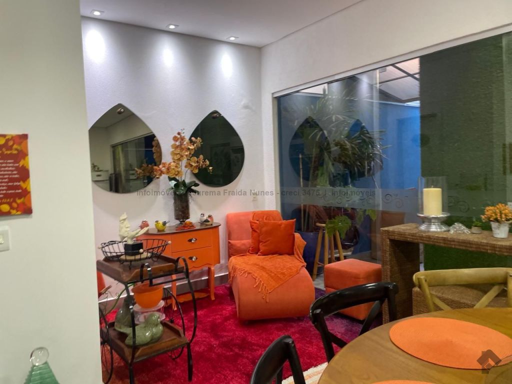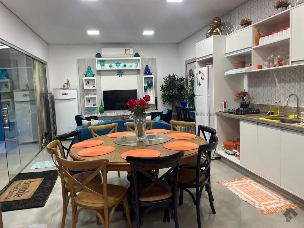 Belíssima casa em excelente localização, pronta para morar. Sistema de segurança com câmeras, alarme e cerca elétrica. Vagas de garagem. Quartos e uma suíte com móveis planejados. Escritório ideal para home office. Cozinha rica em planejados com balcão. Sala ampla com dois ambientes. Banheiros com armários e box. Corredores nas duas laterais. Área de serviço coberta. Área gourmet deslumbrante, ampla e climatizada, com lavabo e sala de TV. Ar-condicionado em seis ambientes. Energia fotovoltaica, economia na conta de luz.
