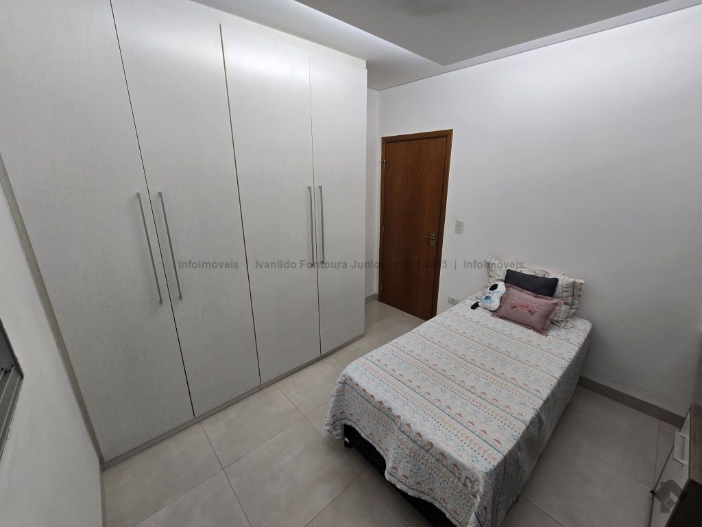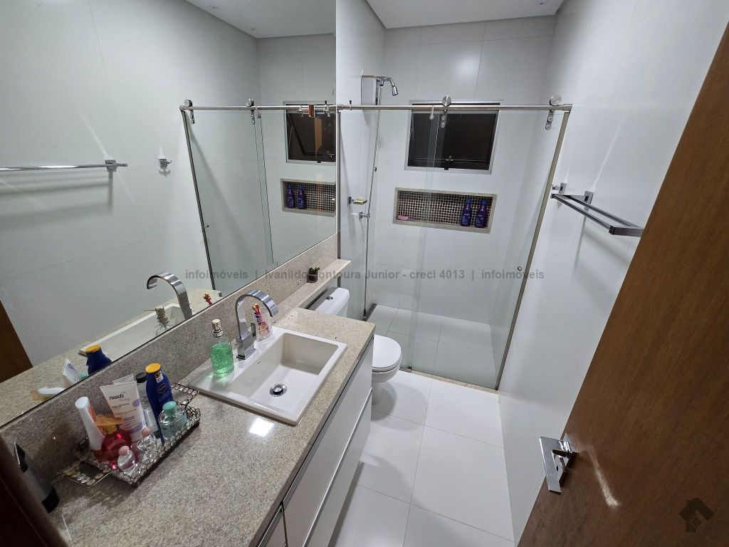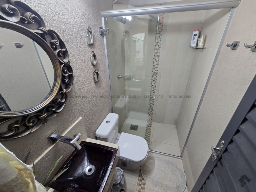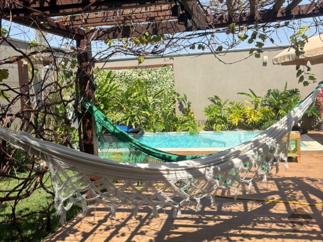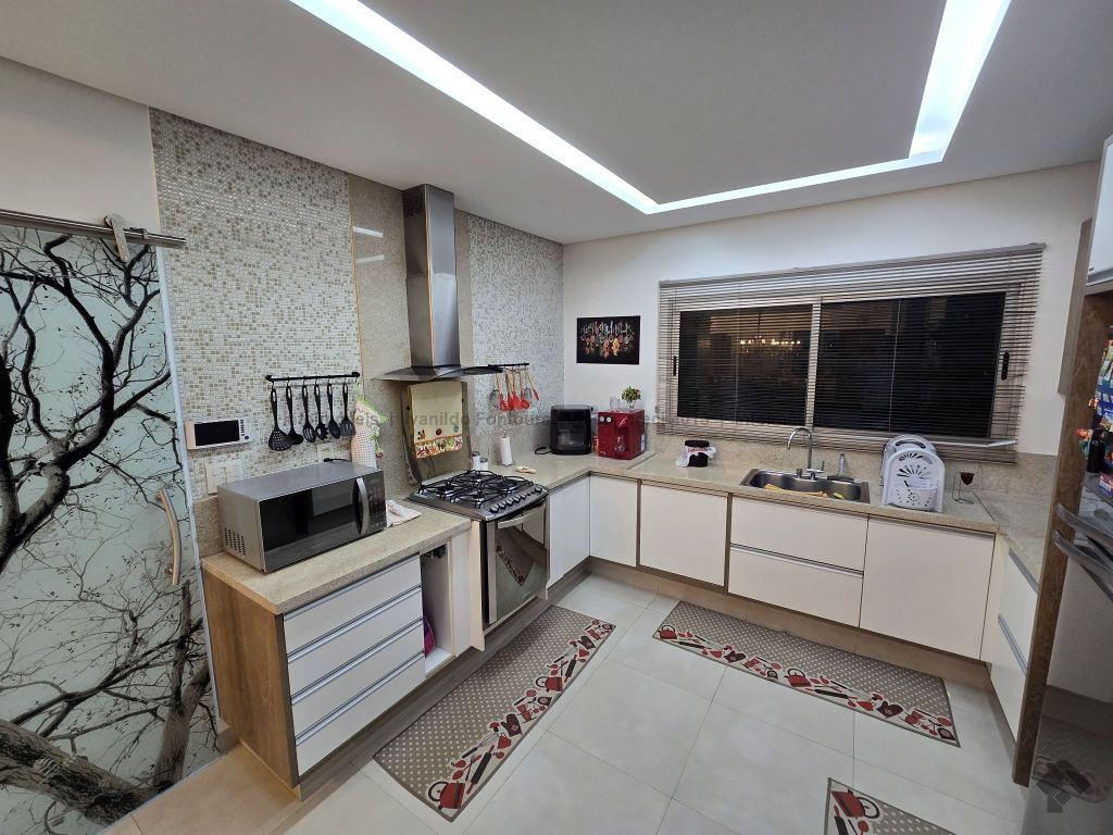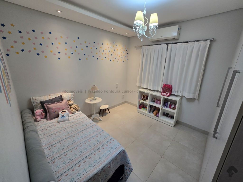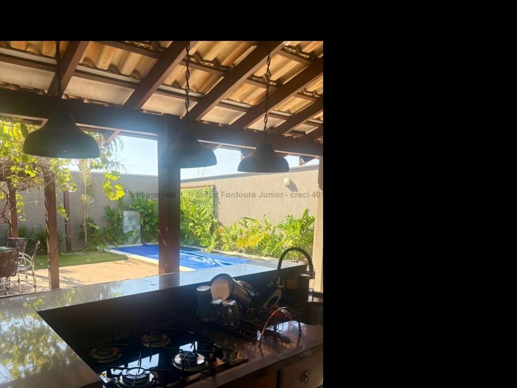 Casa térrea contendo uma suíte com armários, dois quartos com armários, banheiro social, sala de estar, sala de jantar, cozinha planejada, área de serviço com armários, varanda com churrasqueira, piscina aquecida, despensa, lavabo, poço, energia fotovoltaica, cerca elétrica e garagem para dois carros coberta.