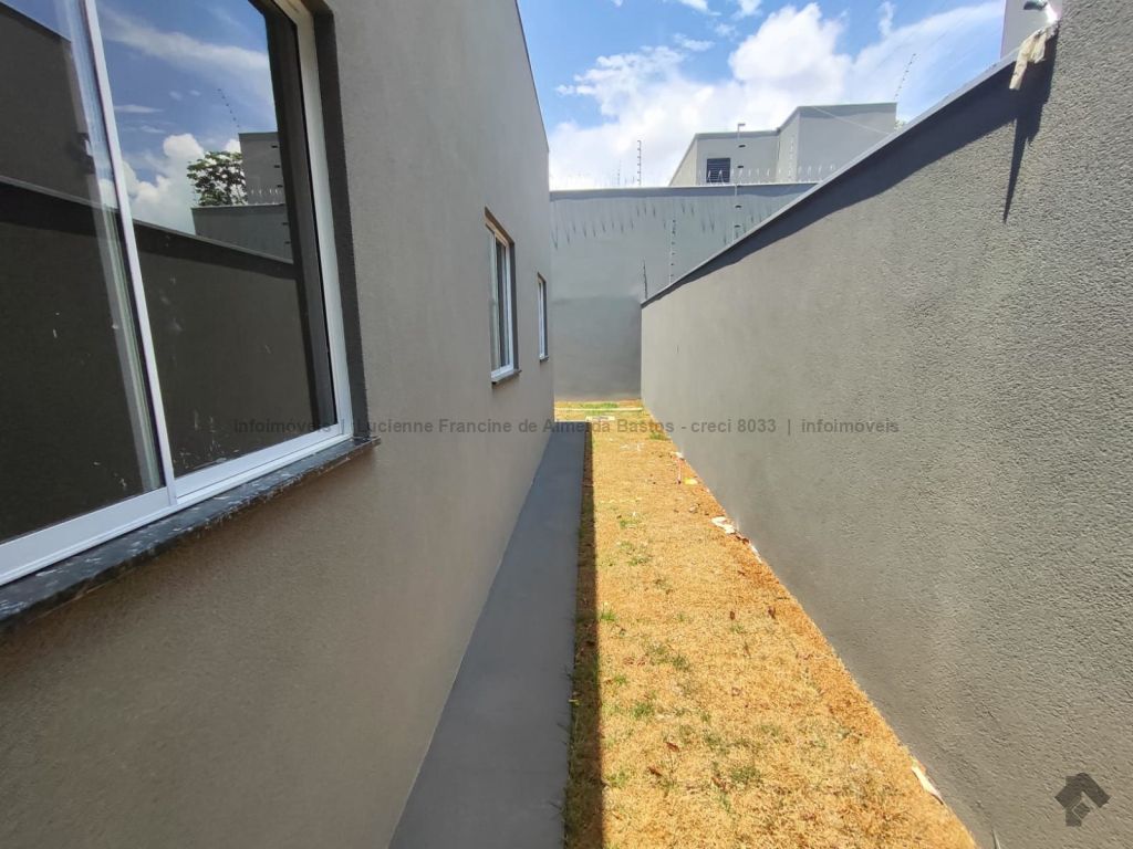 3 quartos e terreno grande. Ótimo padrão de acabamento, material de acabamento de primeira linha. Estrutura de concreto e laje. Espaço na frente para carro, forro de gesso rebaixado e iluminação em LED. Todos os cômodos com iluminação natural e janelas grandes. Sala de estar com tomadas para TV, som e internet. Cozinha espaçosa com saída para área de serviço. Suíte e quartos com espaço para cama e guarda-roupas. Possibilidade de área gourmet completa.