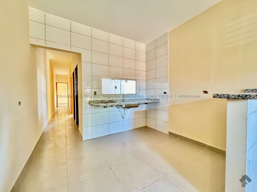O imóvel possui: sala, cozinha integrada, dois quartos, banheiro social, vaga de garagem ampla, área construída de 60,00 m², área de terreno de 120,00 m².