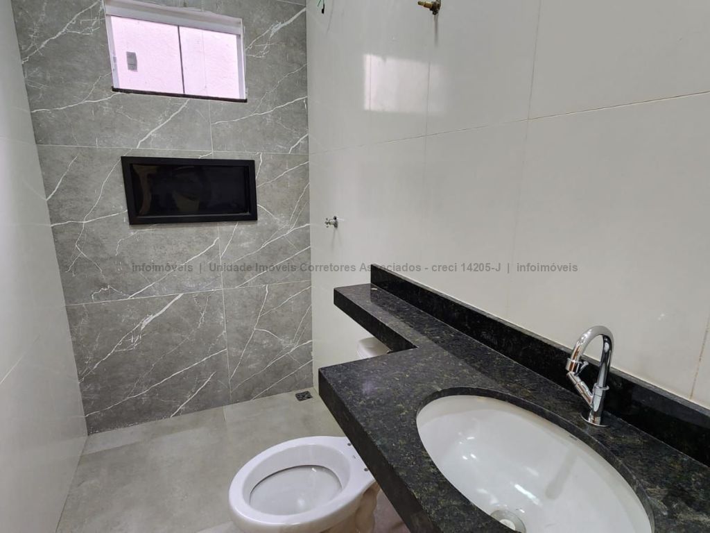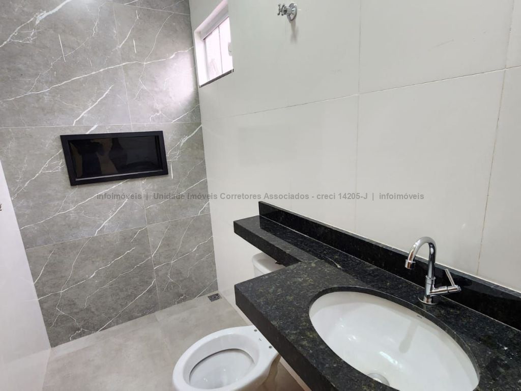 Sala, cozinha, WC social com nicho, uma suíte, um quarto, lavanderia coberta, varanda, corredor lateral, duas vagas de garagem, espaço no fundo, acabamento diferenciado com sanca rebaixada em LED e piso retificado com rodapé embutido.