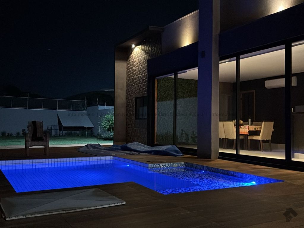 3 suítes com ar-condicionado espaçosas, 1 escritório ideal para home office, 1 lavabo, cozinha integrada ao espaço gourmet com churrasqueira, piscina aquecida, conforto o ano todo, sistema de energia fotovoltaica, potência de 11.760 kWp, geração de 1.400 kWh/mês, cortinas automatizadas no espaço gourmet, sistema de câmeras de monitoramento, rica em móveis planejados em todos os ambientes, imóvel financiável, analisa permutas. Casa moderna, espaçosa e pronta para morar com tecnologia, conforto e segurança.