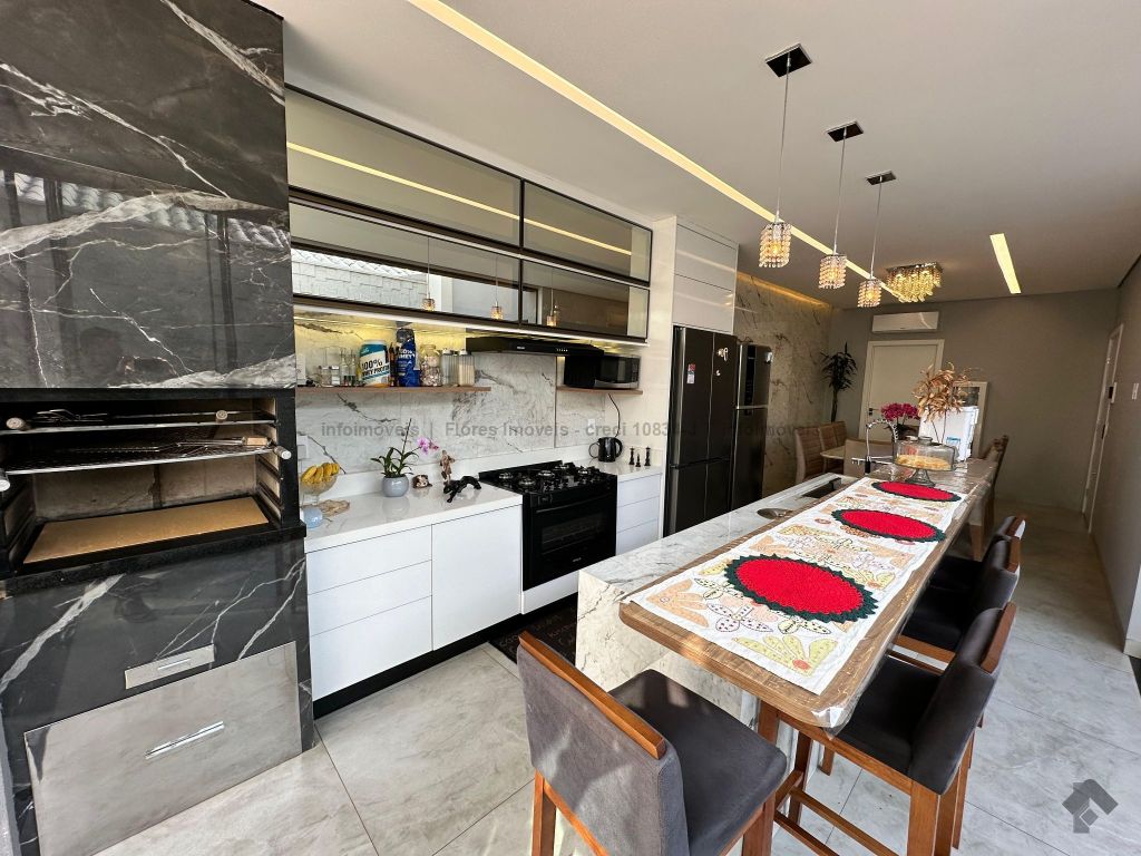 Imóvel rico em planejados, 4 suítes com armários e ar condicionado, cozinha gourmet planejada com 2 ambientes, piscina aquecida com hidro e prainha, energia fotovoltaica de 1000 kW.