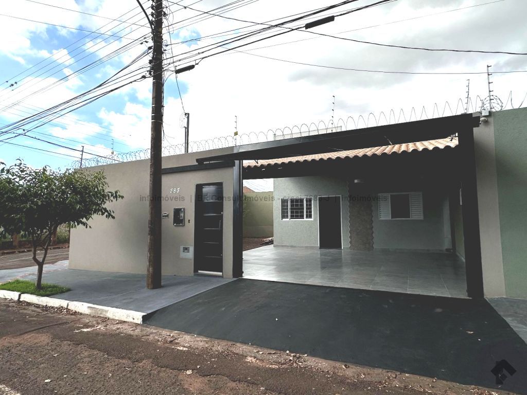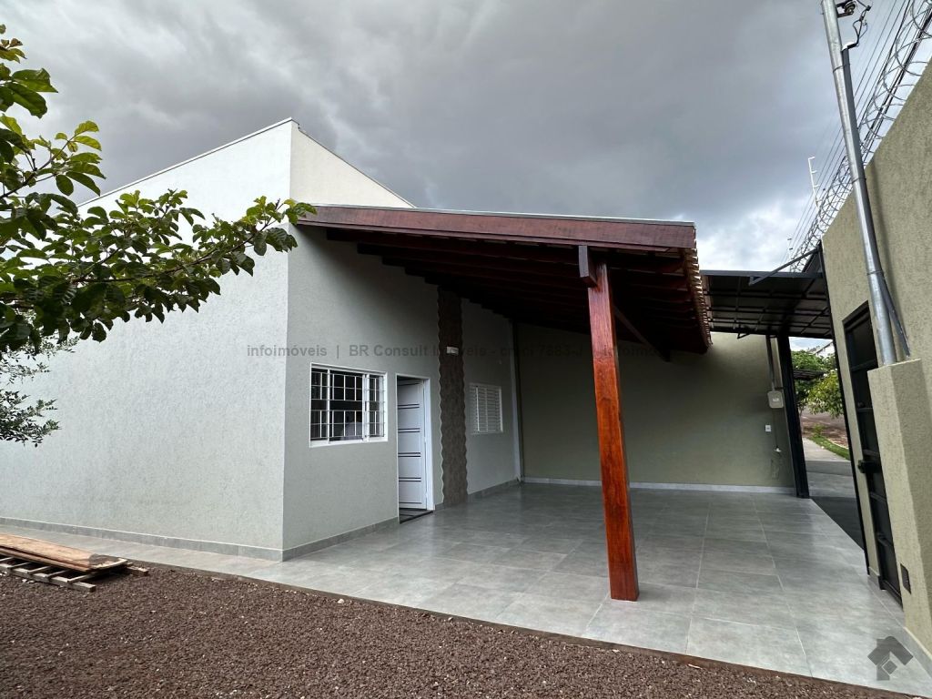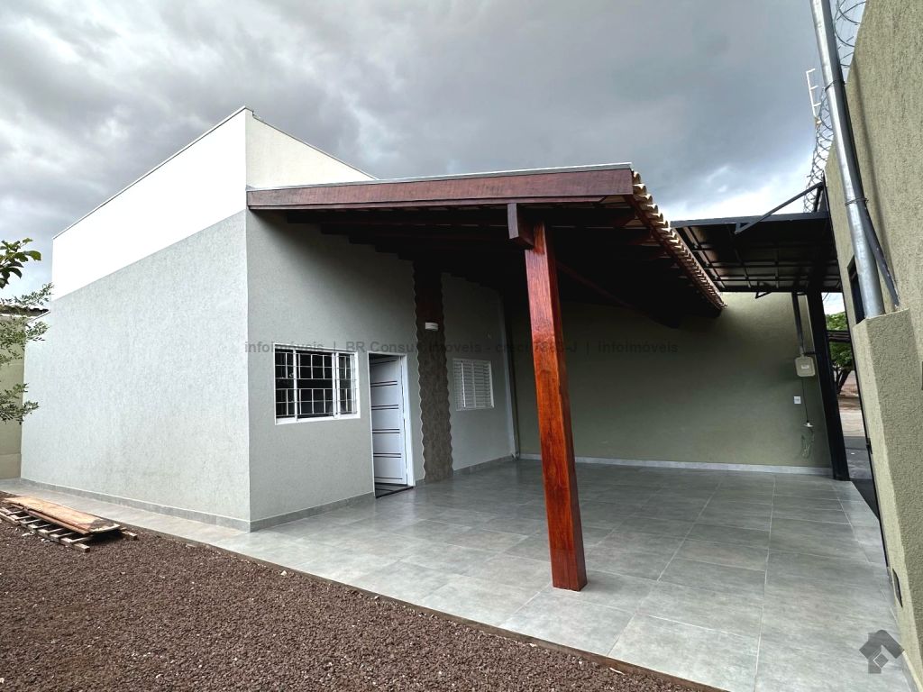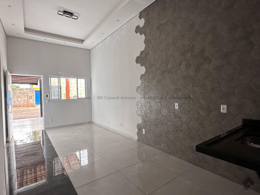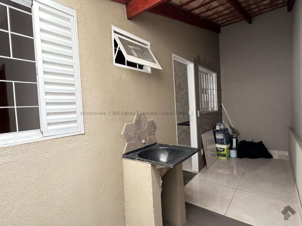 Sala e cozinha americana (pé direito alto), 1 quarto, 1 suíte, 1 banheiro, lavanderia coberta, garagem coberta para 2 carros, terreno amplo. Área total 182 m², área construída 77 m².