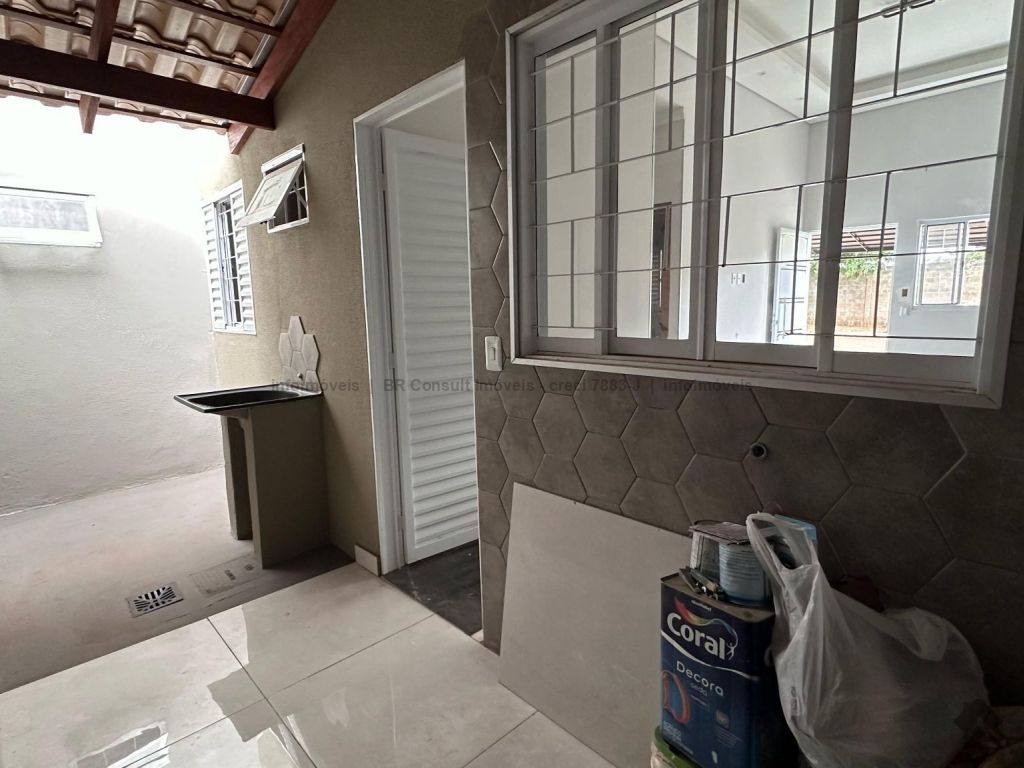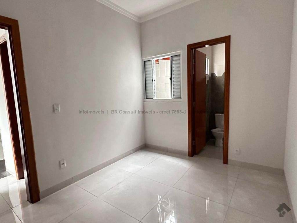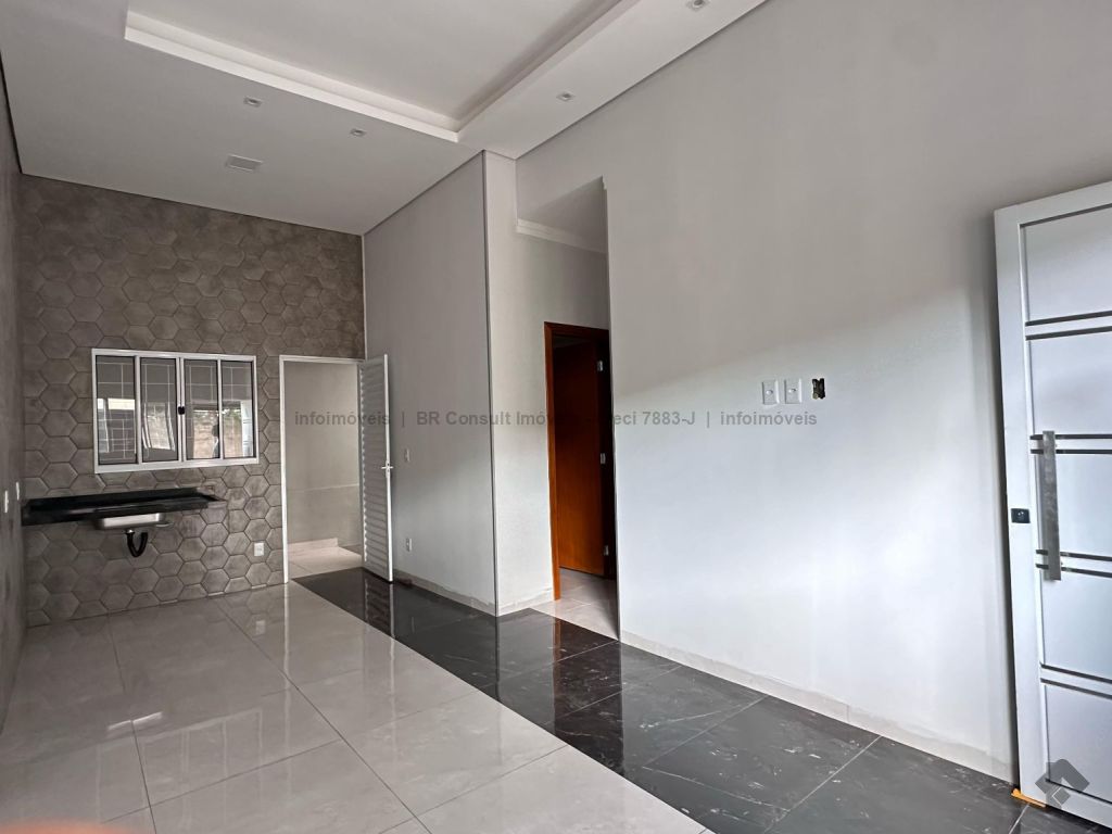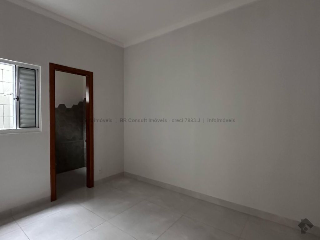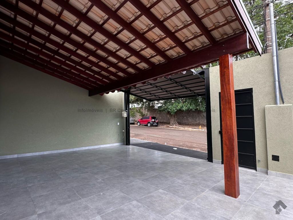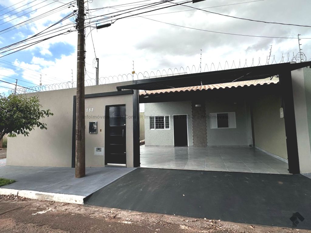 Sala e cozinha americana (pé direito alto), 1 quarto, 1 suíte, 1 banheiro, lavanderia coberta, garagem coberta para 2 carros, terreno amplo. Área total 182 m², área construída 77 m².