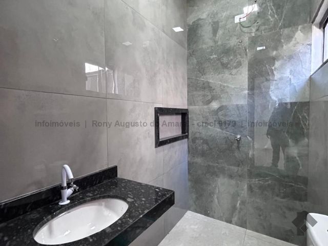 Imóvel no Anache com 140 m² de área total e 70 m² de área construída, sala com pé direito alto, três quartos, sendo um suíte, banheiro social, cozinha, área de serviço externa e garagem.