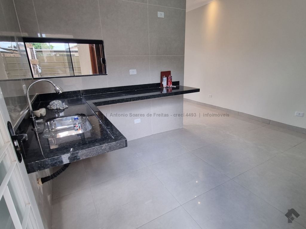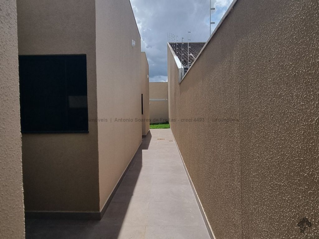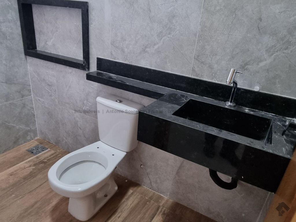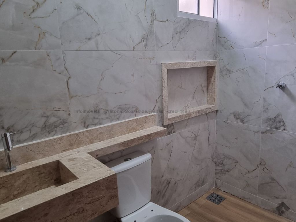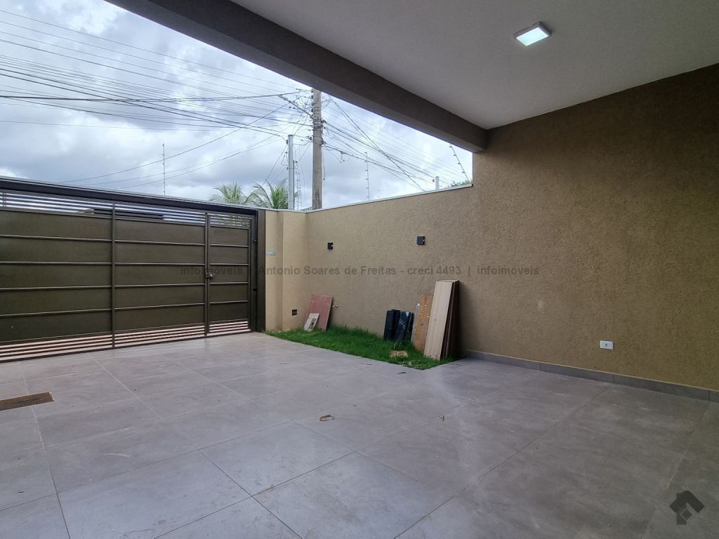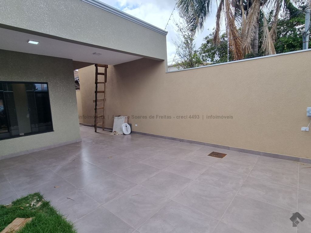 Fachada imponente e design moderno. Louças e acabamento de primeira linha. Possui cerca elétrica, porcelanato, rodapés embutidos, sanca, moldura e rebaixamento em gesso, projeto luminotécnico, linda porta em madeira, portão de elevação com motor, garagem coberta e descoberta. Terreno amplo aos fundos com ducha. Composta de 1 suíte, 2 quartos, banheiros (suíte e social) azulejados com pia esculpida em mármore e nicho embutido, sala de estar e jantar, cozinha azulejada com pia em L e mármore com bancada, área de serviço azulejada.