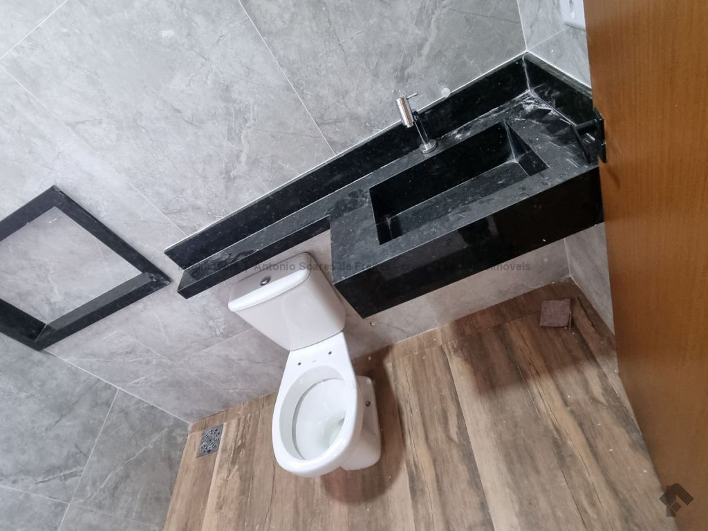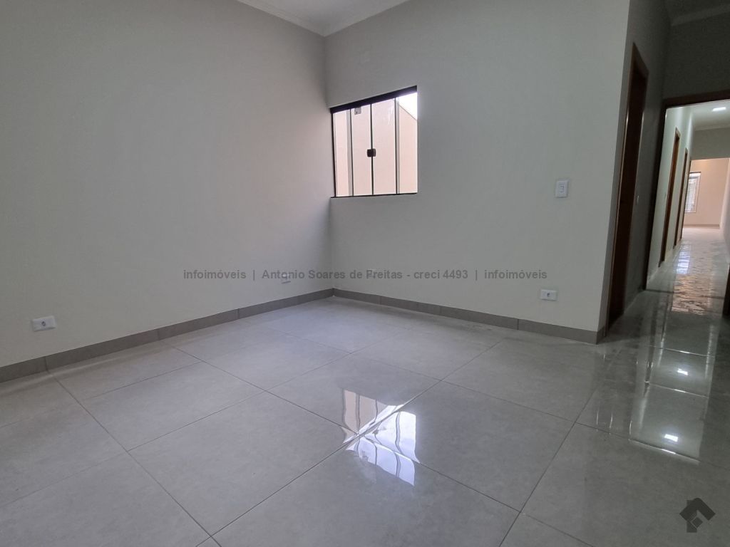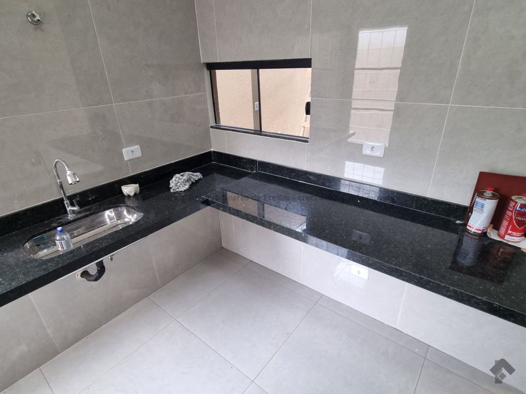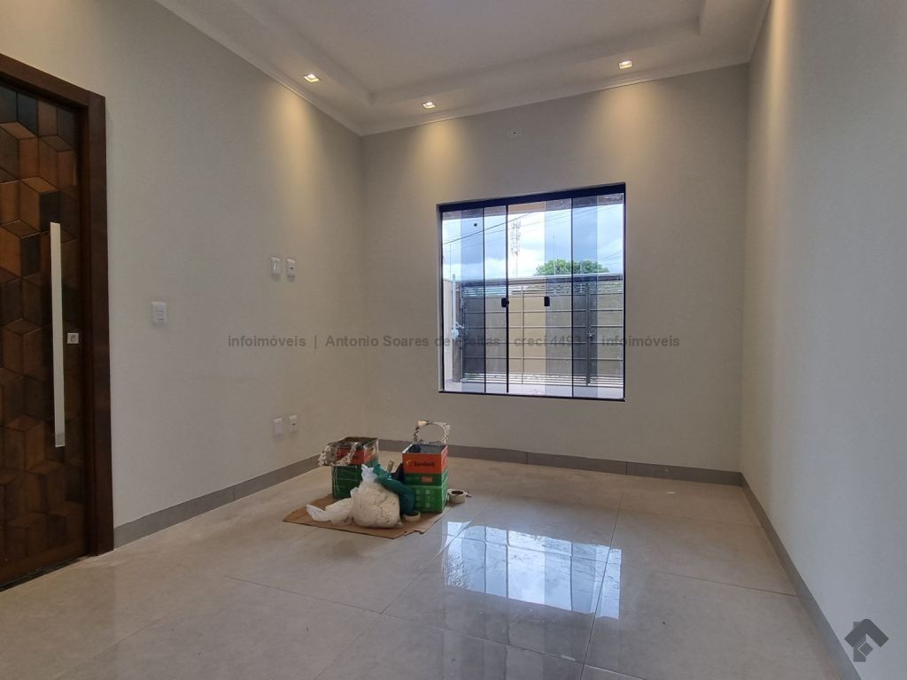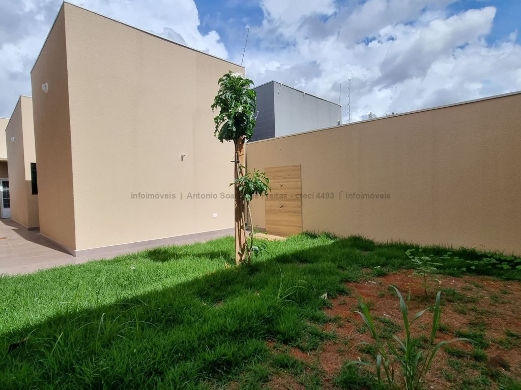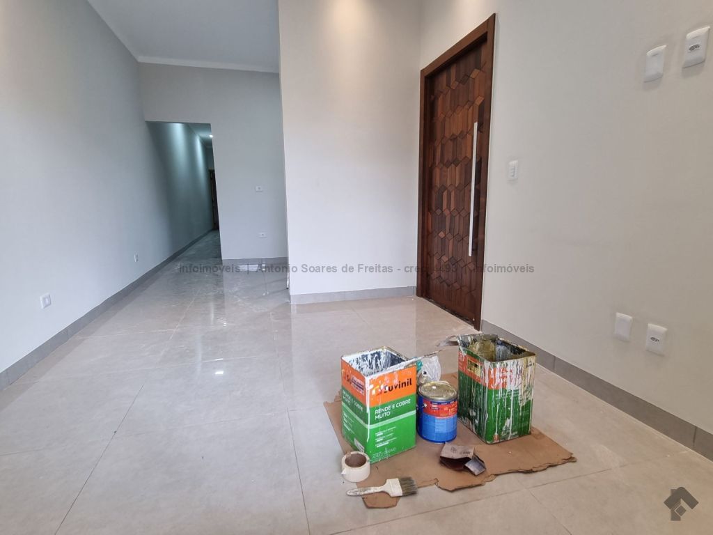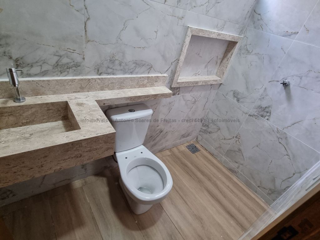 Fachada imponente e design moderno. Louças e acabamento de primeira linha. Possui cerca elétrica, porcelanato, rodapés embutidos, sanca, moldura e rebaixamento em gesso, projeto luminotécnico, linda porta em madeira, portão de elevação com motor, garagem coberta e descoberta. Terreno amplo aos fundos com ducha. Composta de 1 suíte, 2 quartos, banheiros (suíte e social) azulejados com pia esculpida em mármore e nicho embutido, sala de estar e jantar, cozinha azulejada com pia em L e mármore com bancada, área de serviço azulejada.