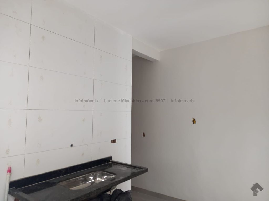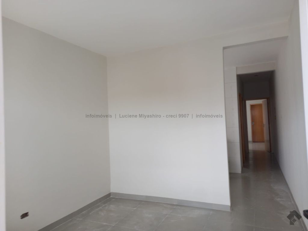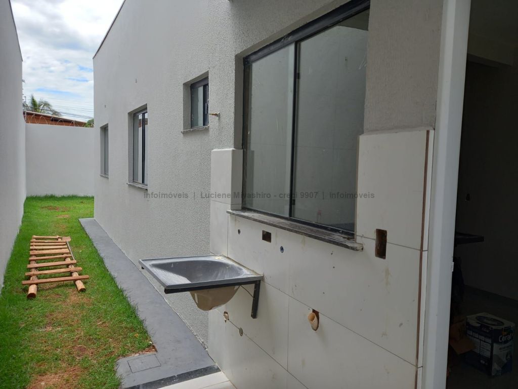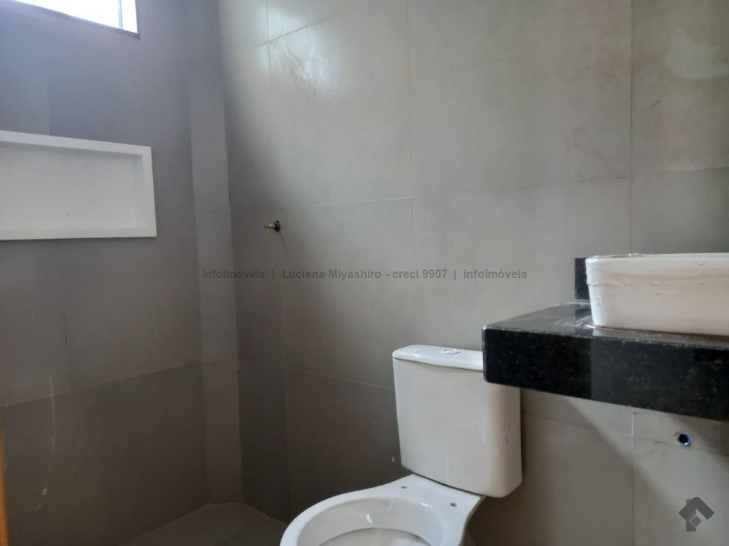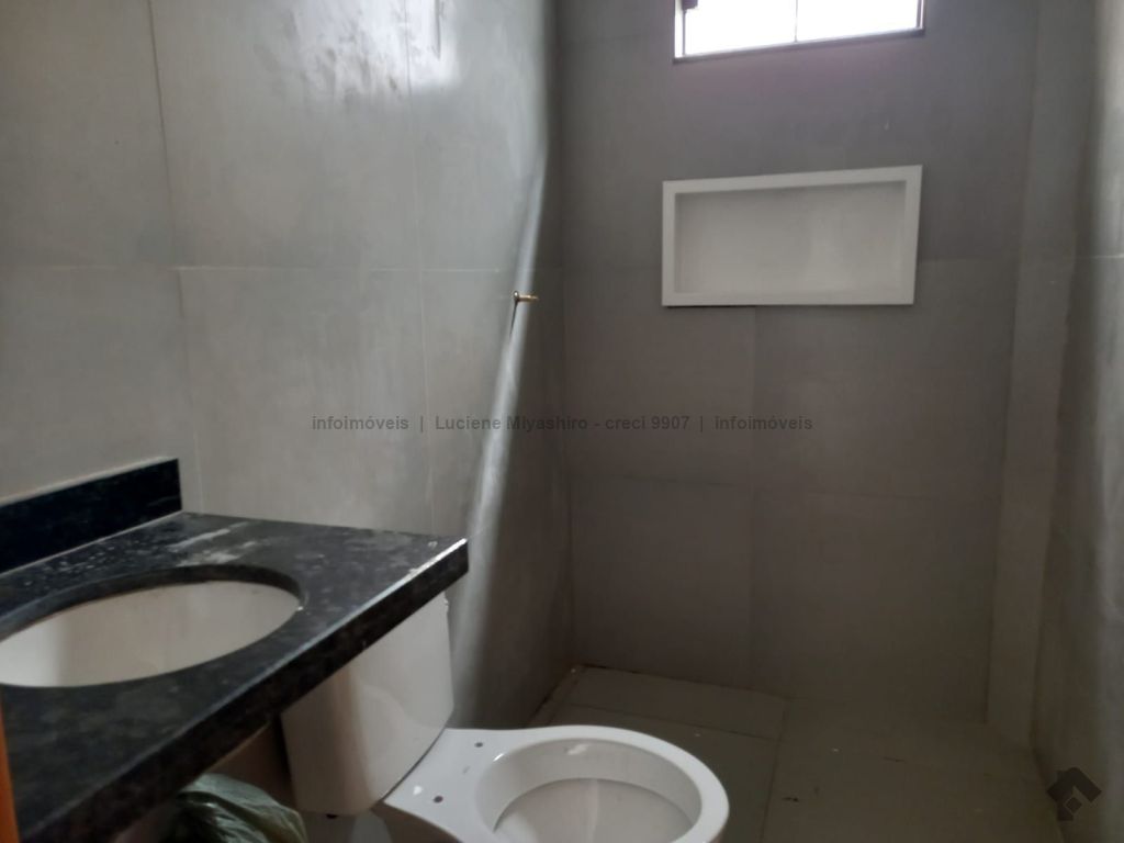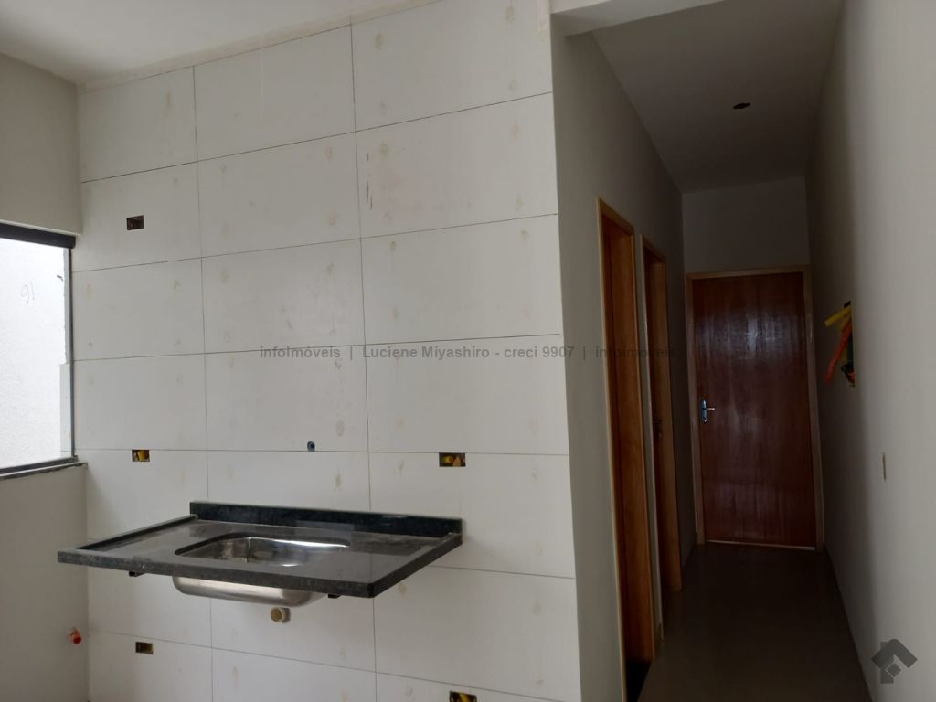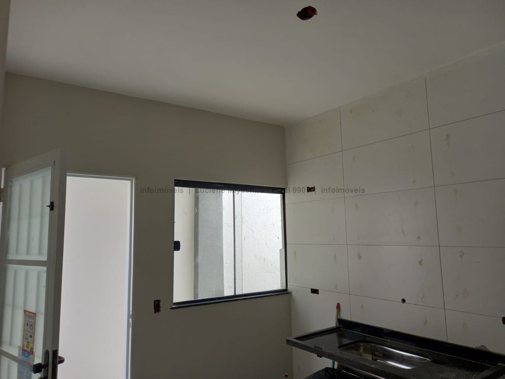 Dois quartos, sendo um suíte, área de serviço coberta, espaço nos fundos, sala arejada, cozinha funcional e garagem descoberta.