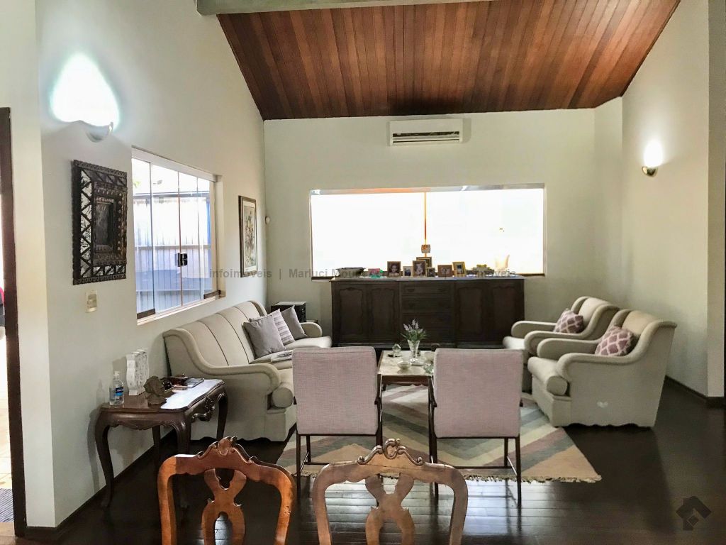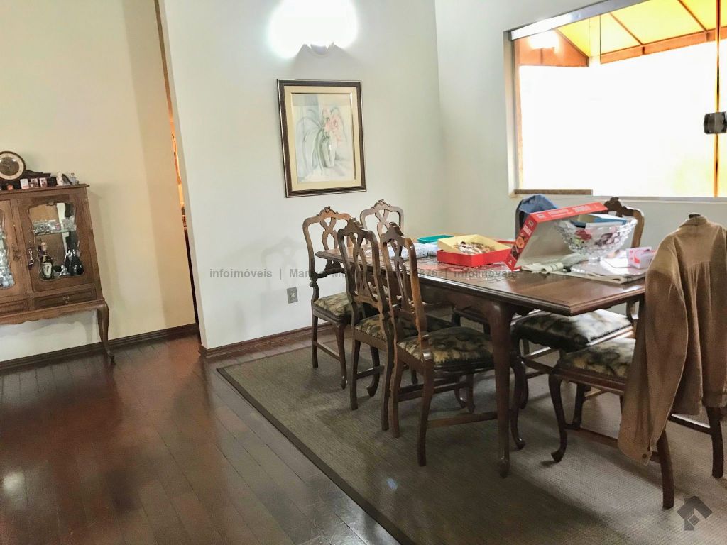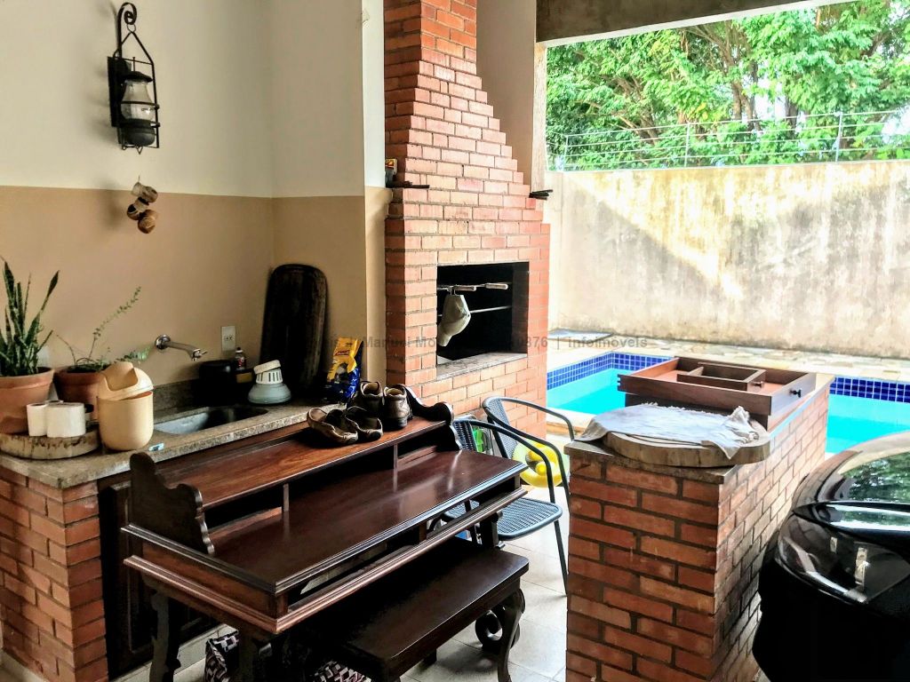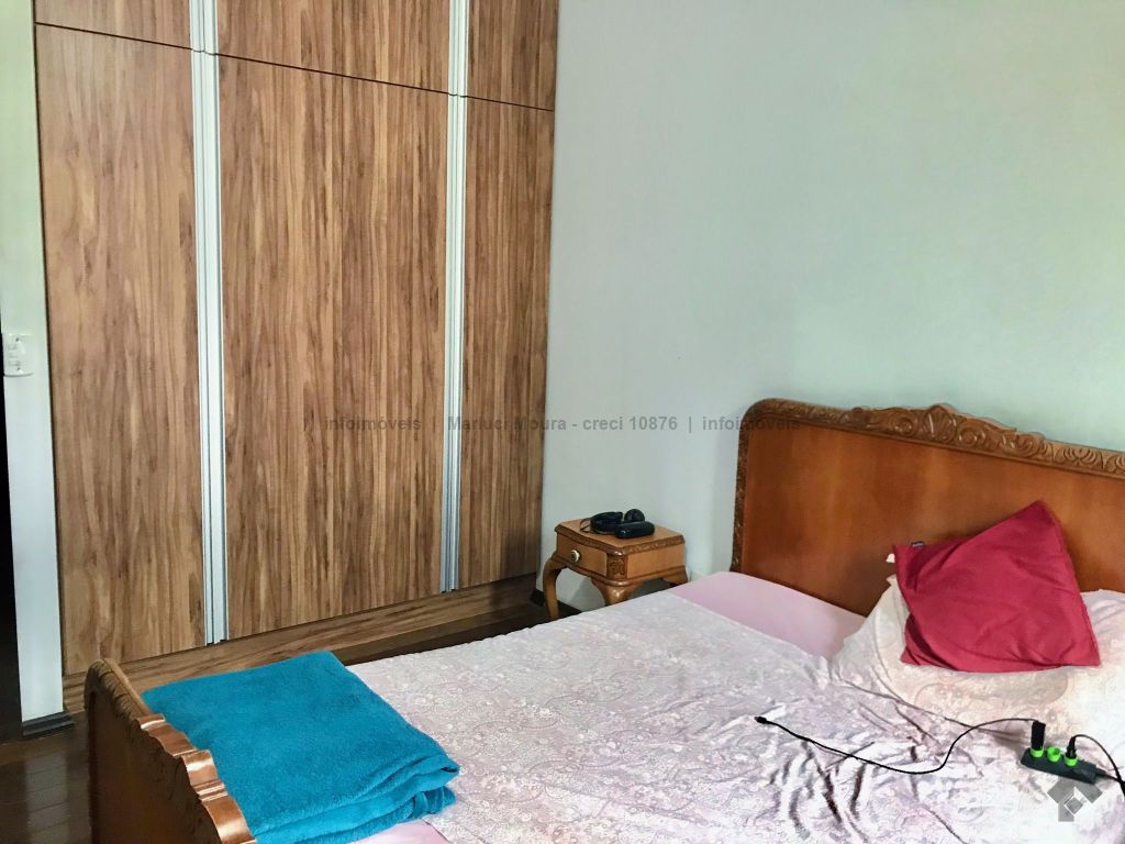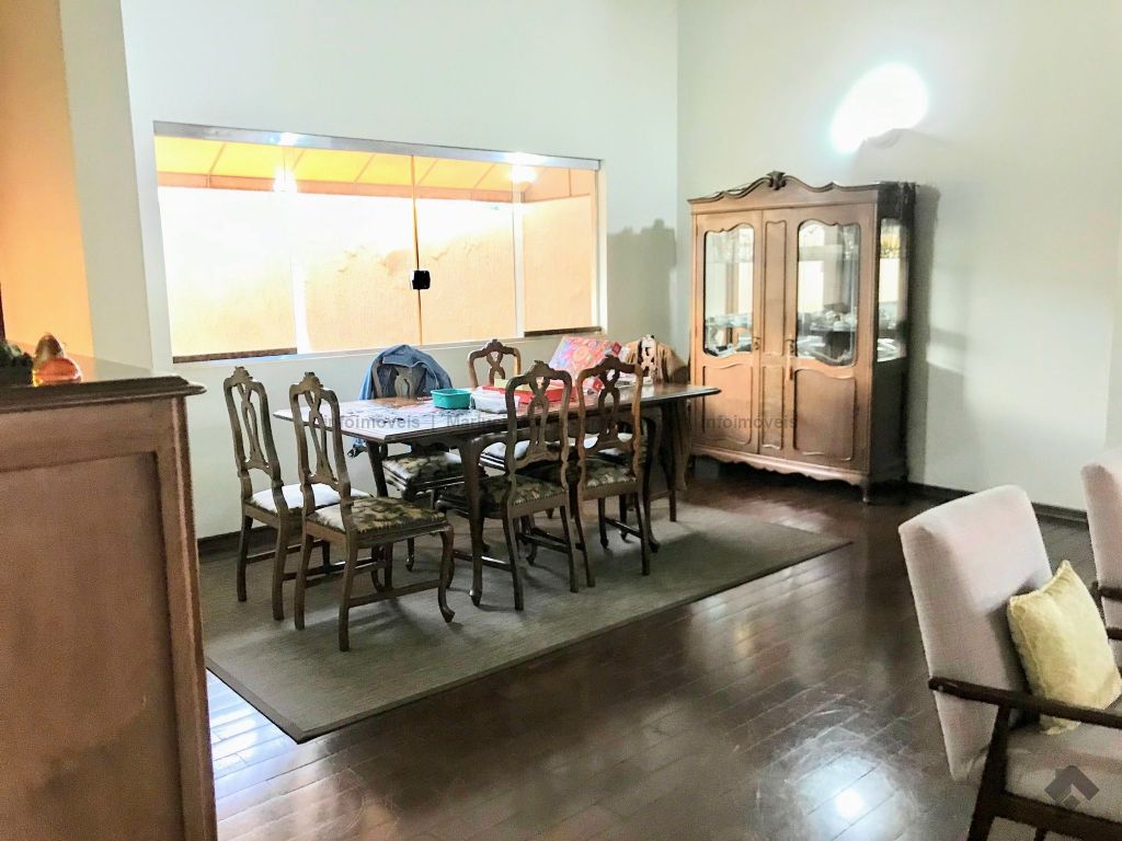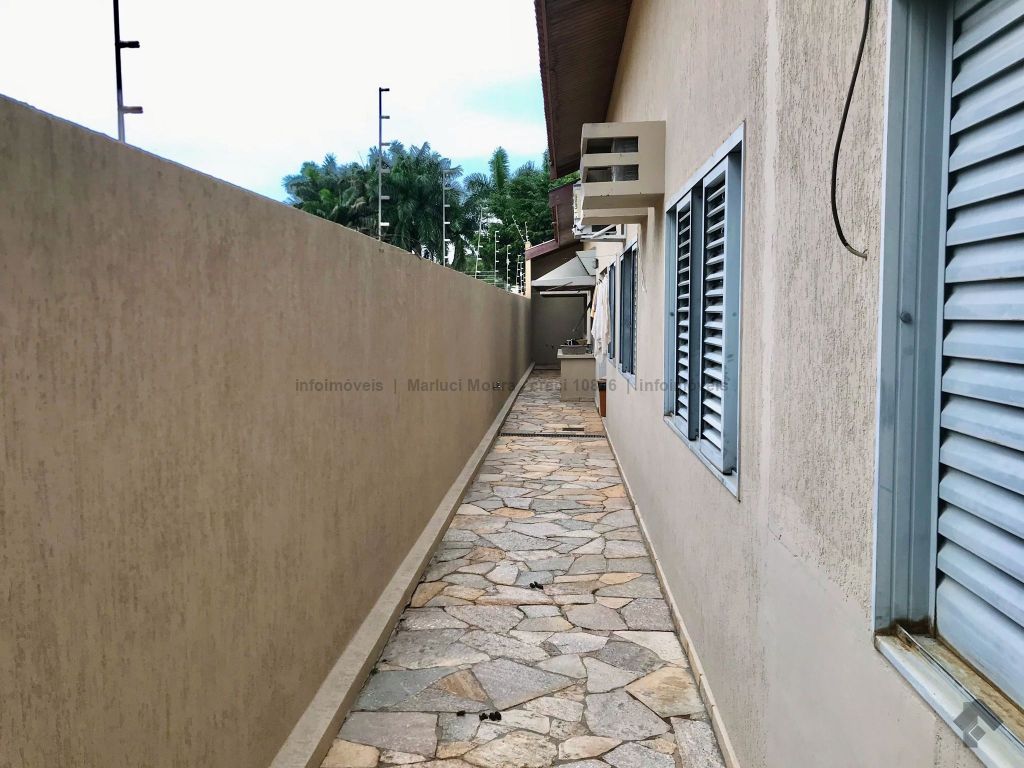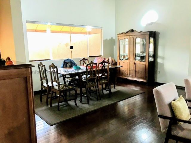Casa térrea, toda em piso ipê, muito bem construída com projeto arquitetônico, situada em área do bairro com localização privilegiada, em esquina. Dispõe de 2 salas amplas com pé direito duplo com vigas em concreto aparente, forro e piso em ipê, 1 lavabo, 1 ampla sala de TV reservada, 2 suítes, sendo uma com armários embutidos e hidromassagem e a outra com armários, mais 2 quartos com armários, embutidos 1 banheiro social amplo, copa e cozinha planejada, escritório, despensa, sauna, área de serviço e quarto de empregada, banheiro de serviço, espaço gourmet com churrasqueira e varanda, 1 ótima piscina, aquecedor solar, aparelhos de ar condicionado, sistema de alarme.