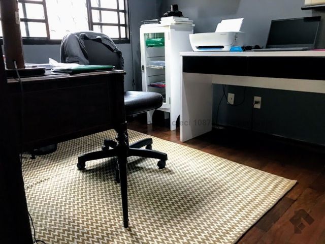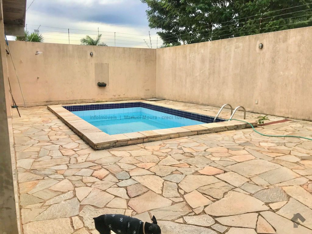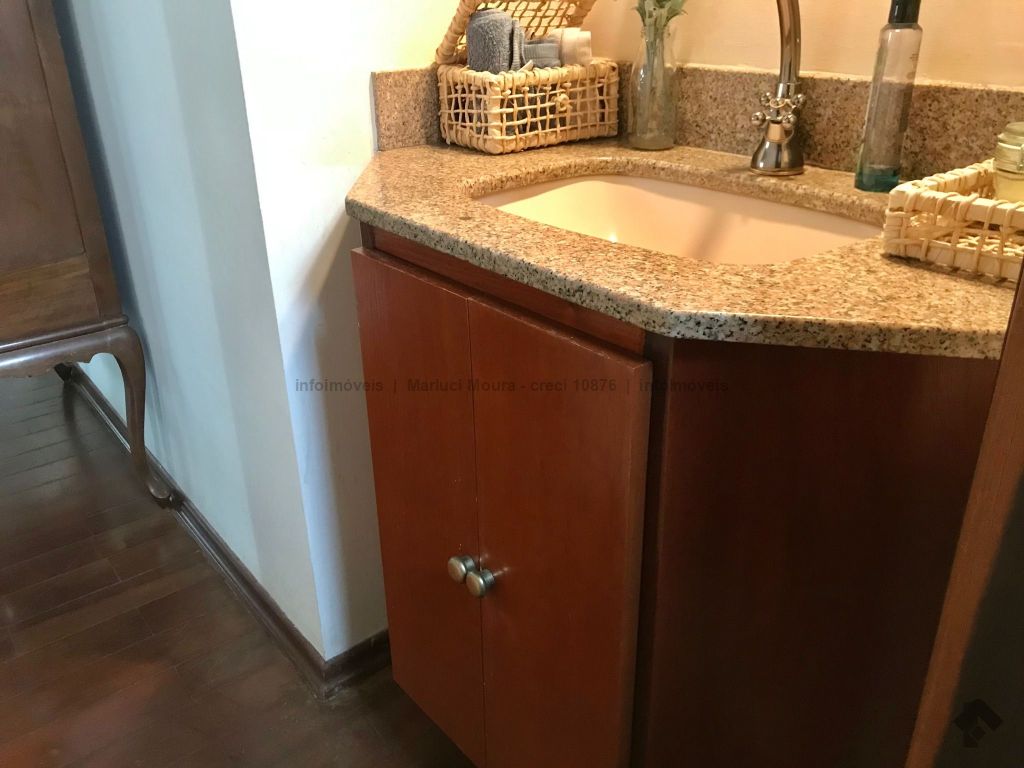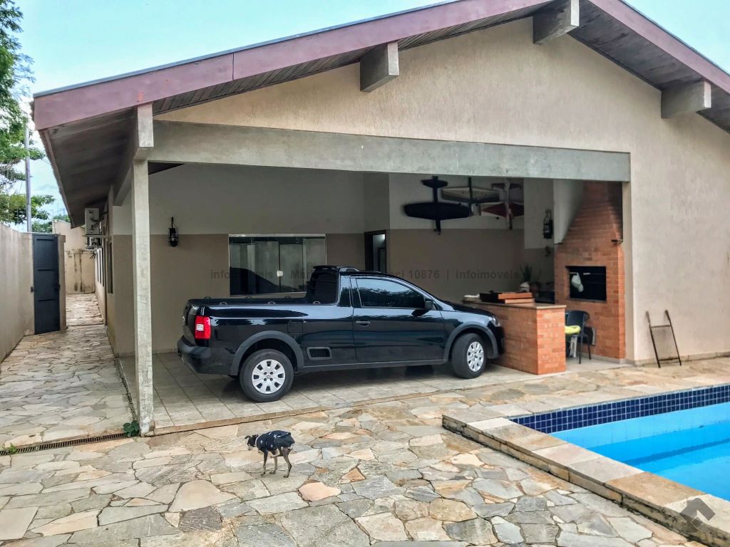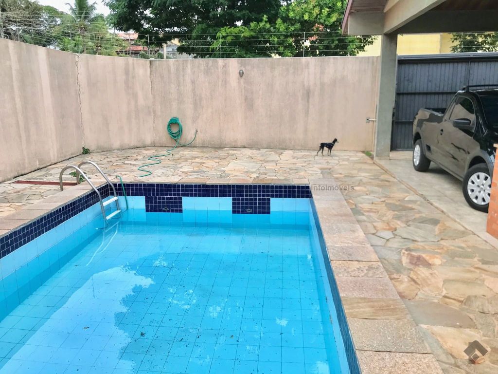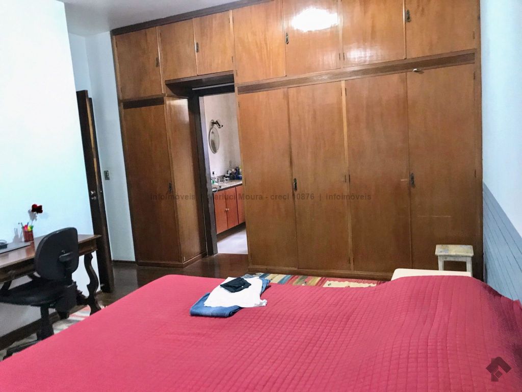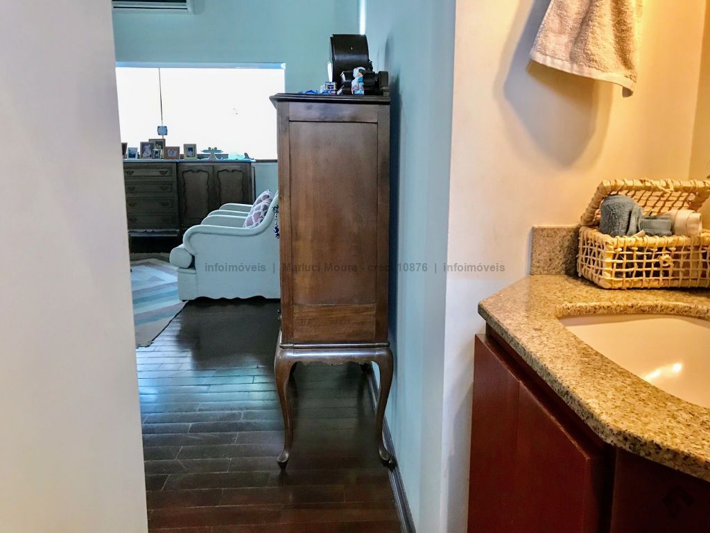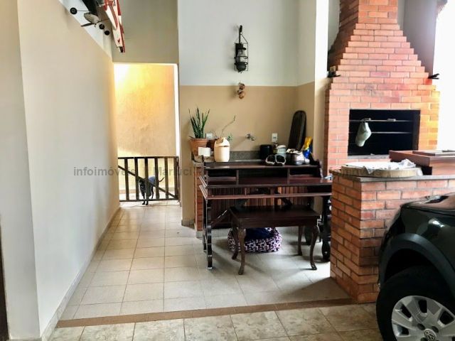 Casa térrea, toda em piso ipê, muito bem construída com projeto arquitetônico, situada em área do bairro com localização privilegiada, em esquina. Dispõe de 2 salas amplas com pé direito duplo com vigas em concreto aparente, forro e piso em ipê, 1 lavabo, 1 ampla sala de TV reservada, 2 suítes, sendo uma com armários embutidos e hidromassagem e a outra com armários, mais 2 quartos com armários, embutidos 1 banheiro social amplo, copa e cozinha planejada, escritório, despensa, sauna, área de serviço e quarto de empregada, banheiro de serviço, espaço gourmet com churrasqueira e varanda, 1 ótima piscina, aquecedor solar, aparelhos de ar condicionado, sistema de alarme.