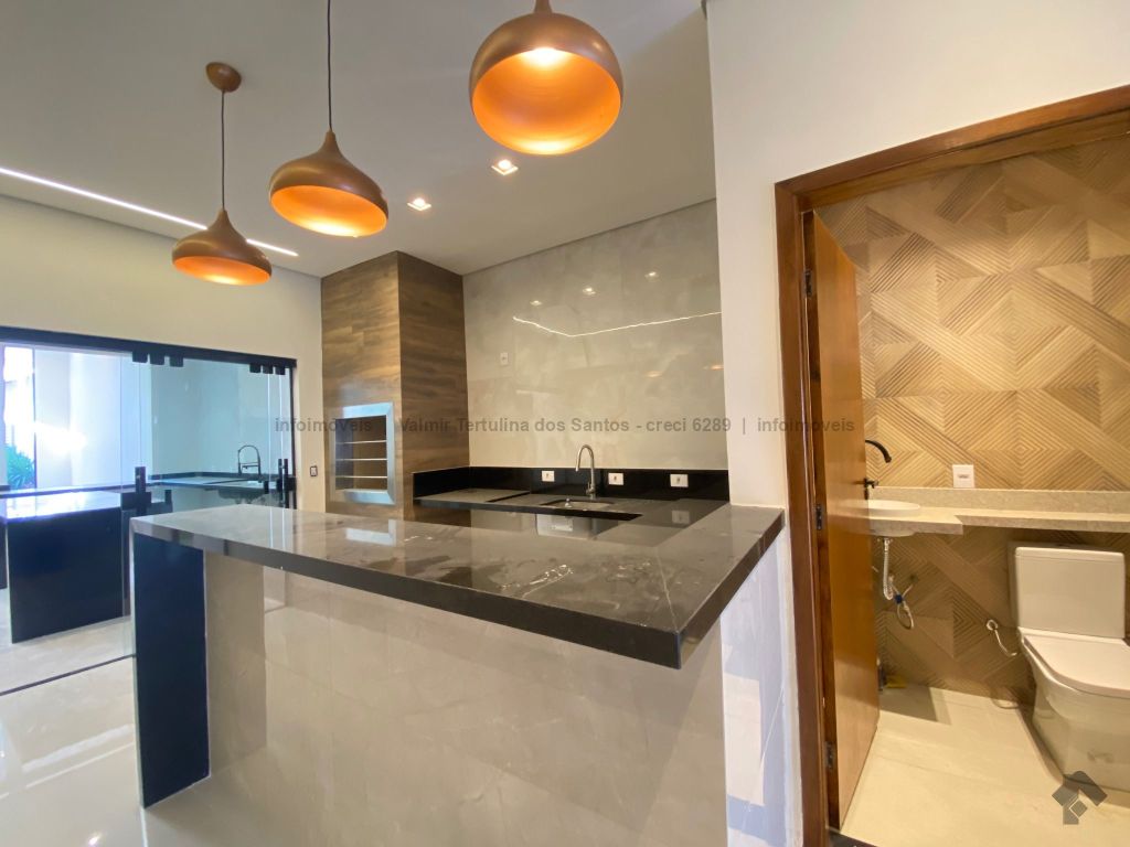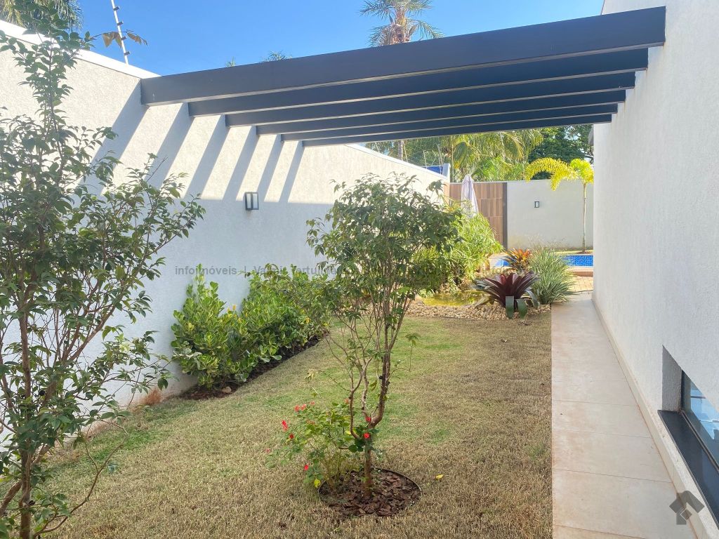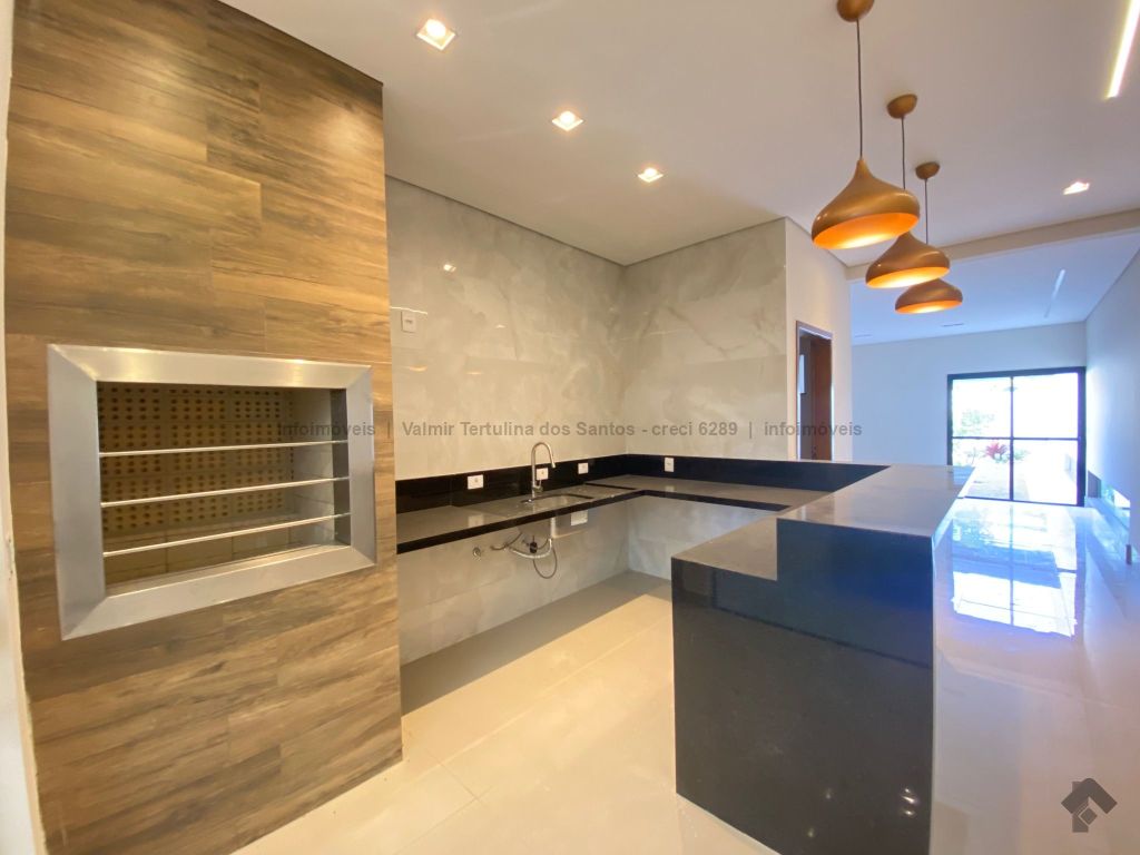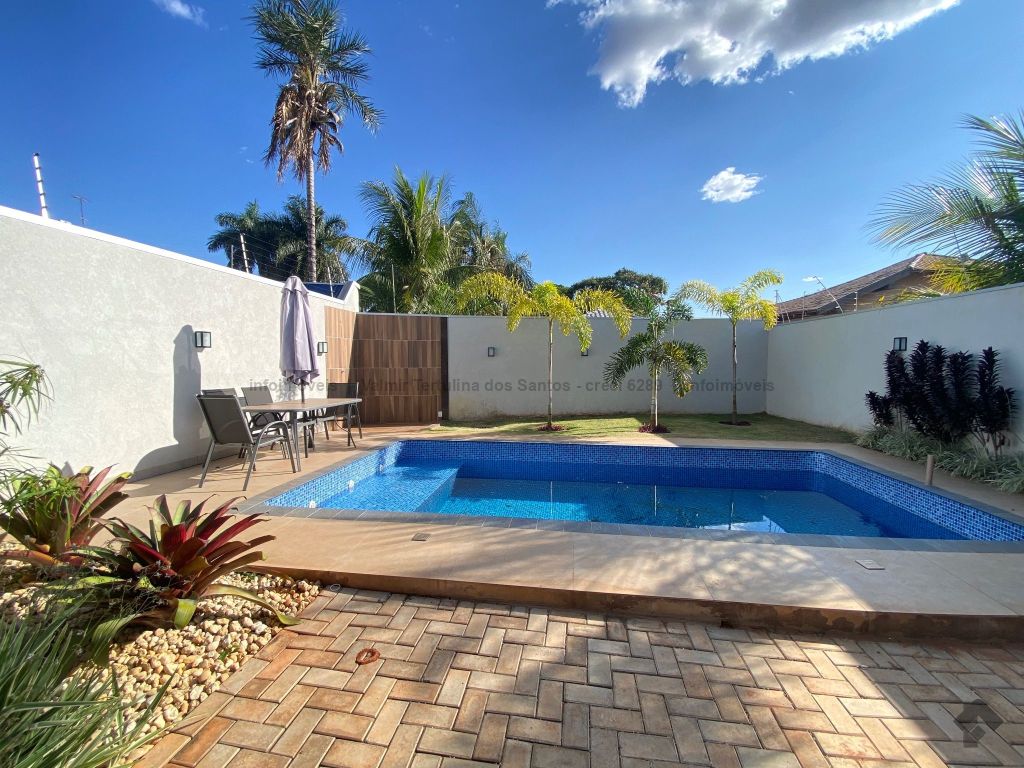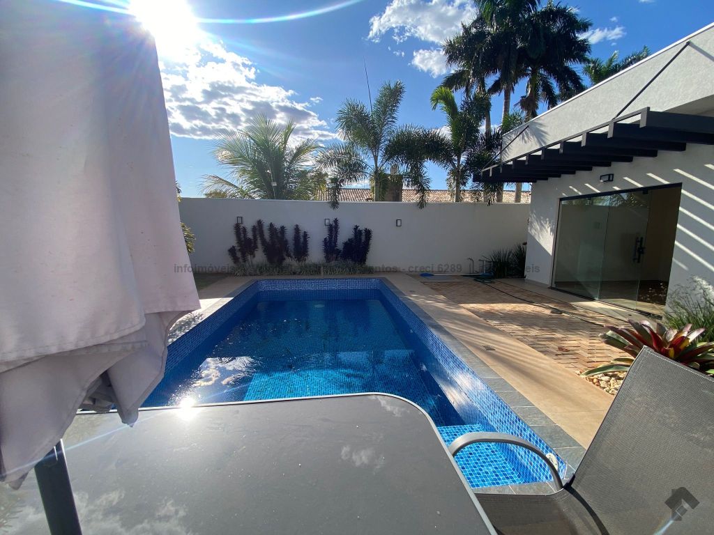 Sala de estar, TV e jantar, cozinha, lavanderia, dois quartos, duas suítes, sendo uma master com porta voltada para a piscina. Área gourmet coberta com pergolado em madeira e piscina.