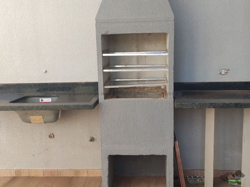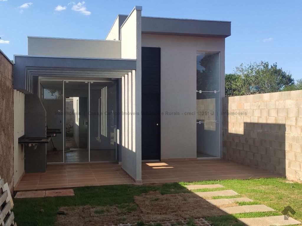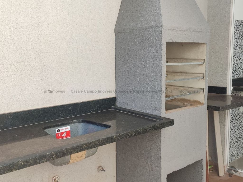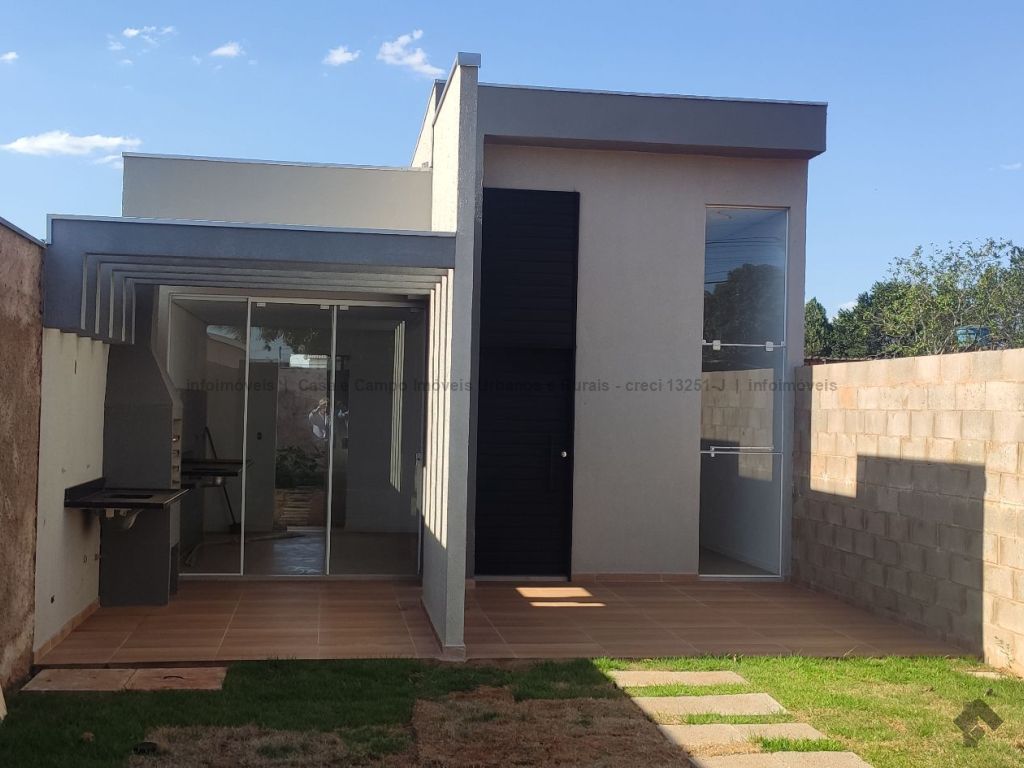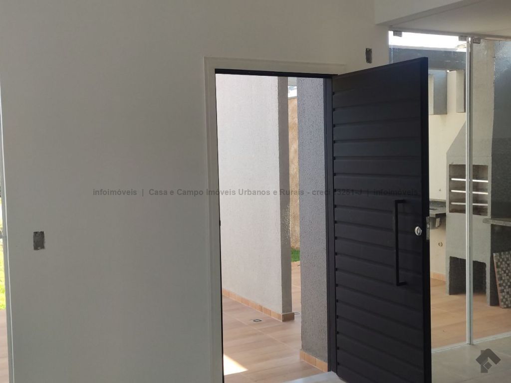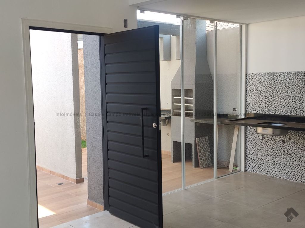 Casa nova, a uma quadra do asfalto, acabamento em porcelanato, pé direito da sala duplo, preparação para ar condicionado nos quartos e na sala, rica em blindex, janelas e portas em alumínio, varanda gourmet acoplada com a cozinha.