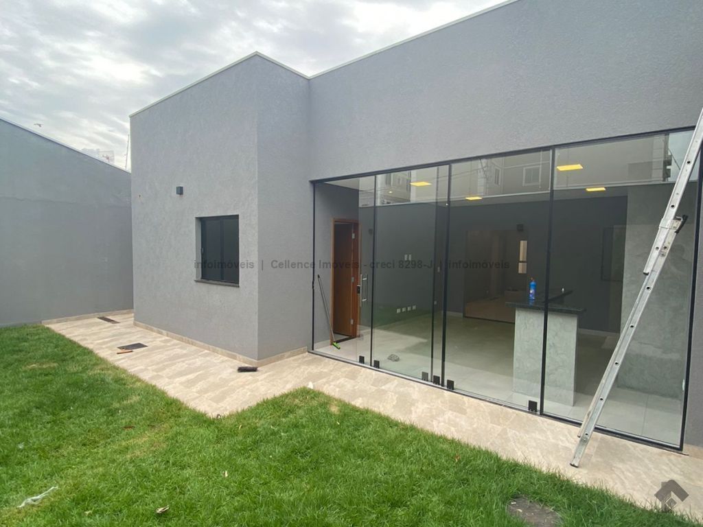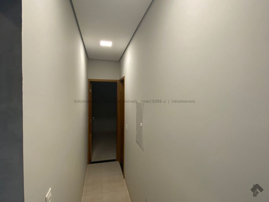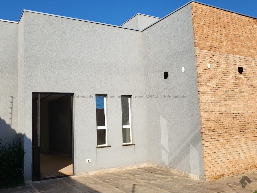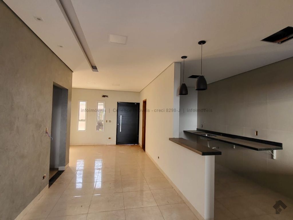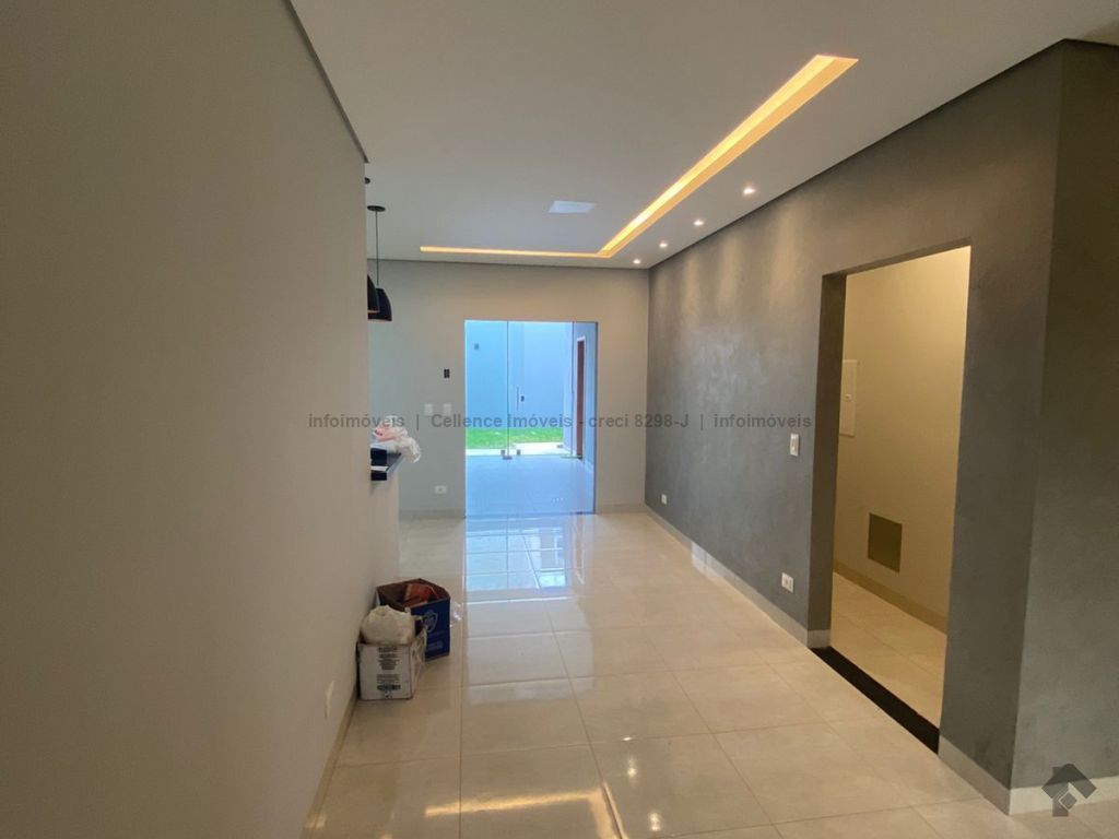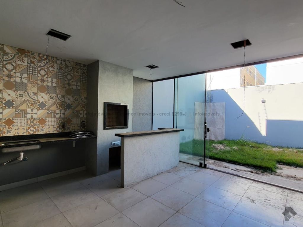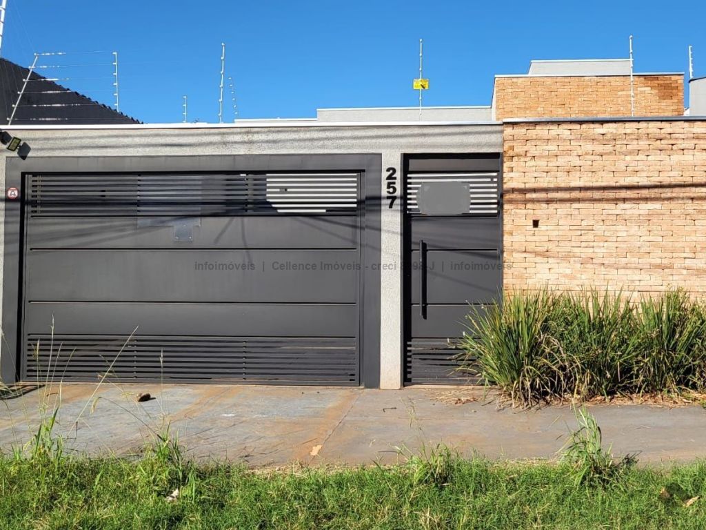 Casa térrea nova, toda em porcelanato, com salas estar, jantar e tv integrada com cozinha e espaço gourmet com churrasqueira, uma suíte e dois quartos, área de serviço fechada, cerca elétrica, alarme, pintura interna em látex e externa em grafiato, parede frontal revestida em tijolinho, com garagem descoberta para 4 carros.