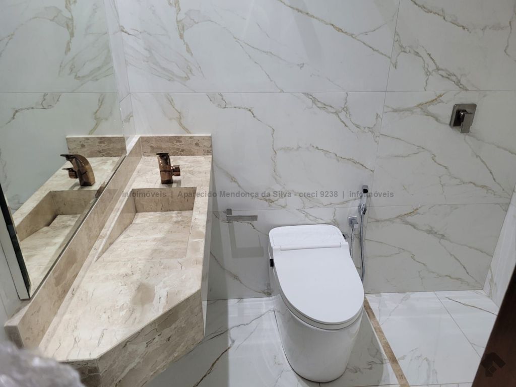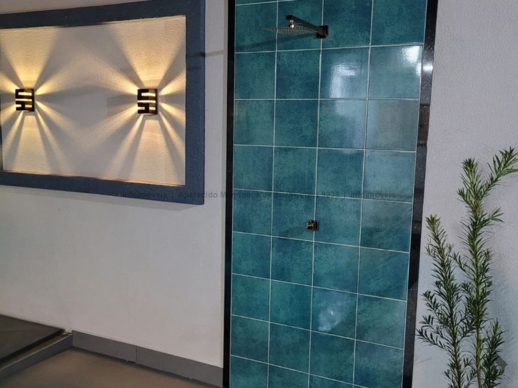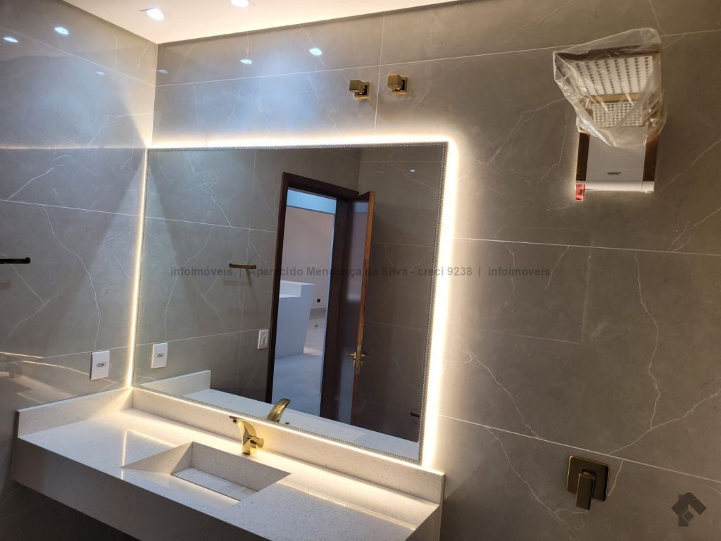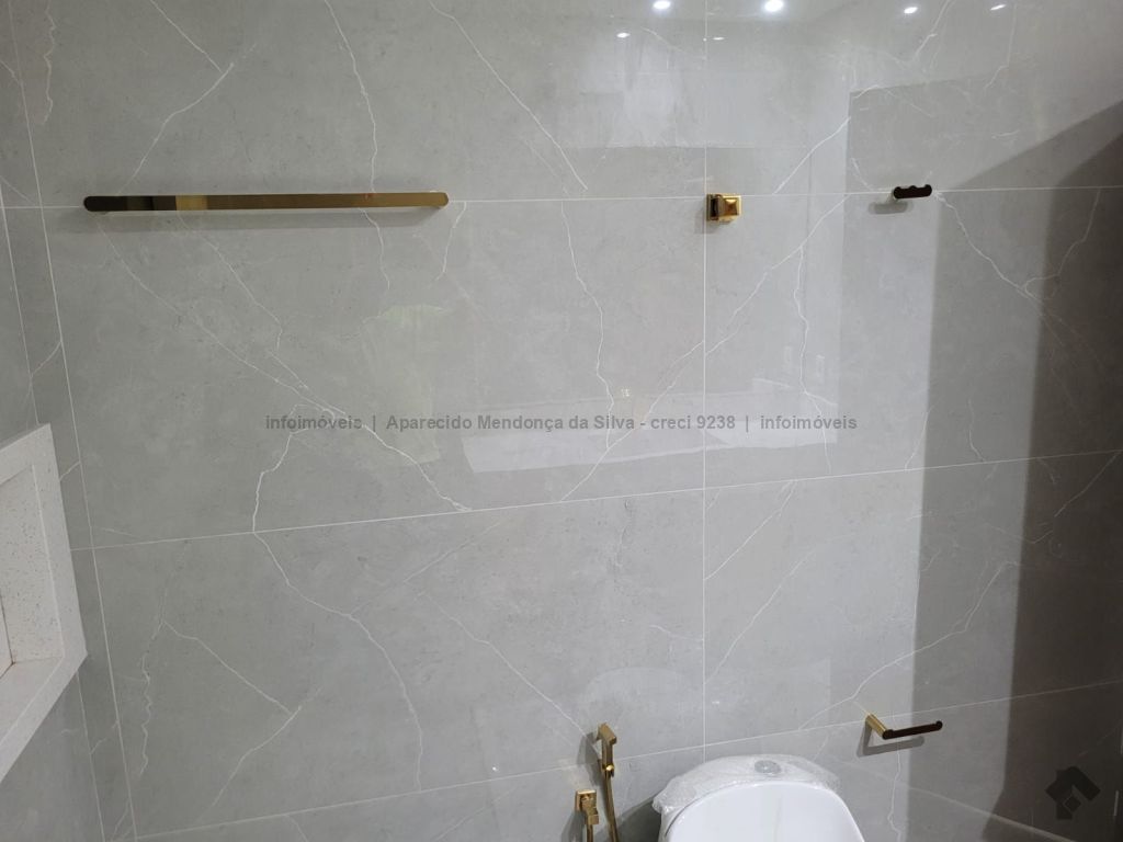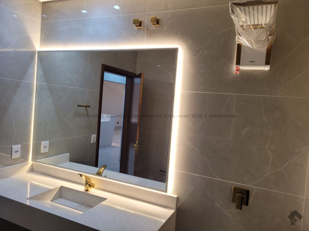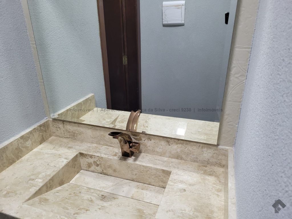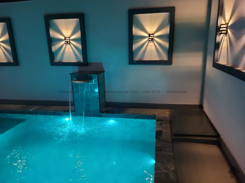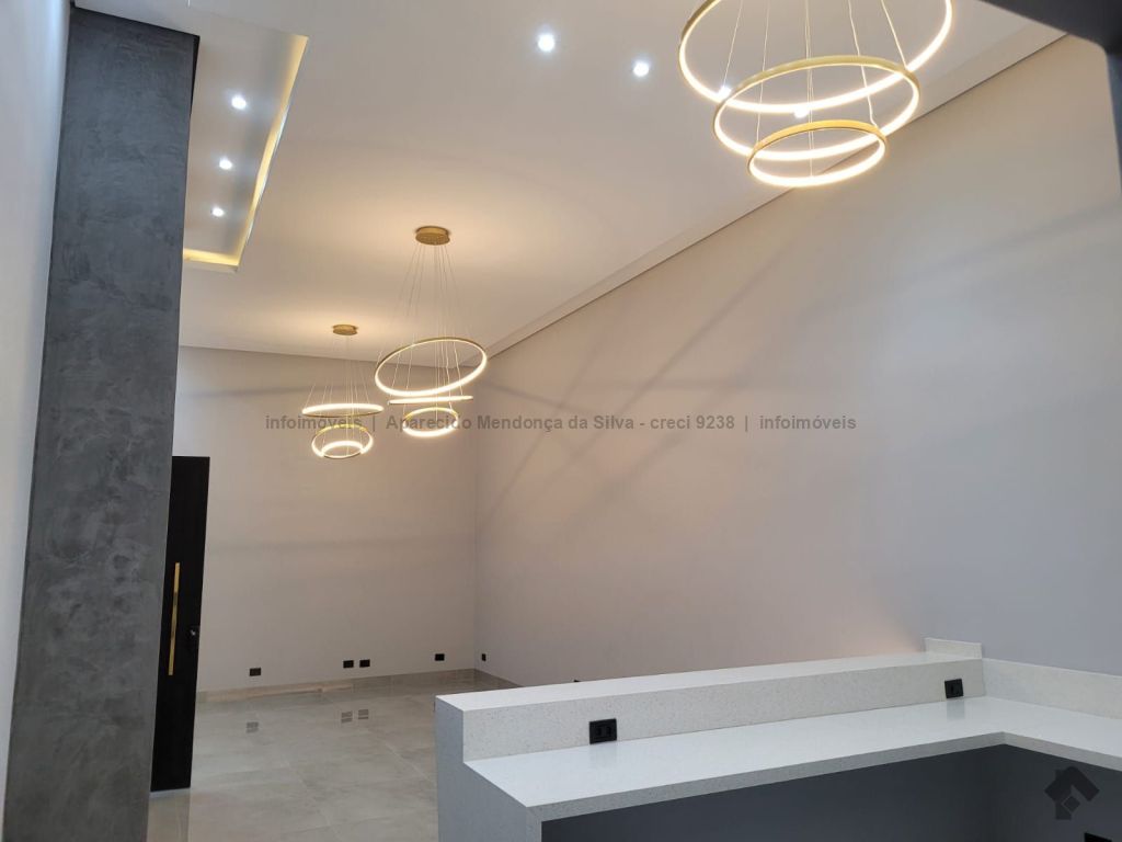 Casa com três quartos, sendo um suíte, sala ampla com pé direito alto, escritório, cozinha, banheiro social, piscina, quintal, portão eletrônico, acabamento todo em porcelanato.