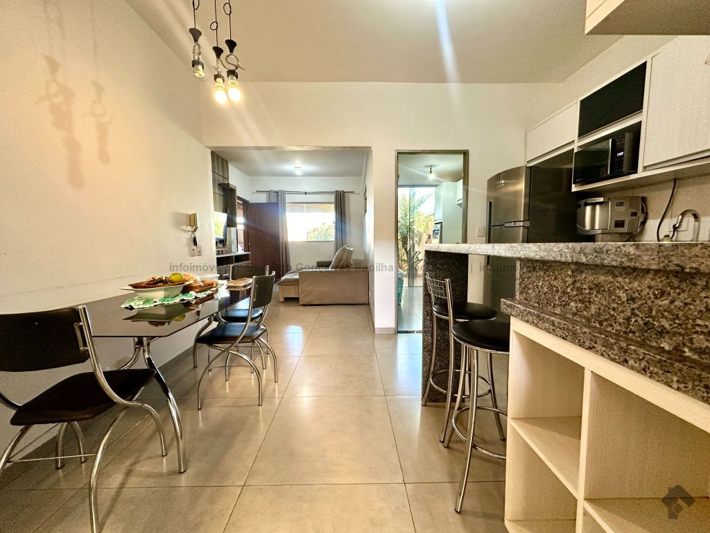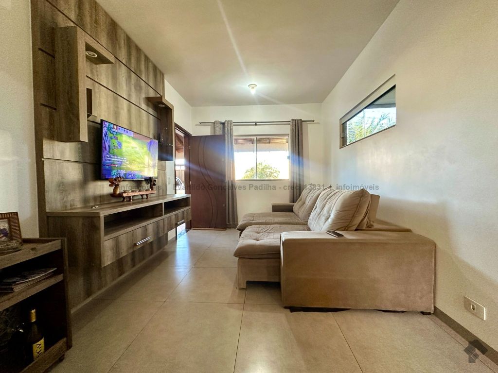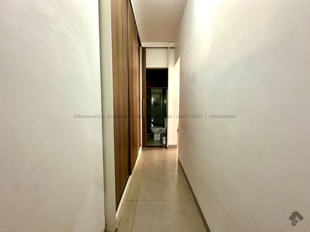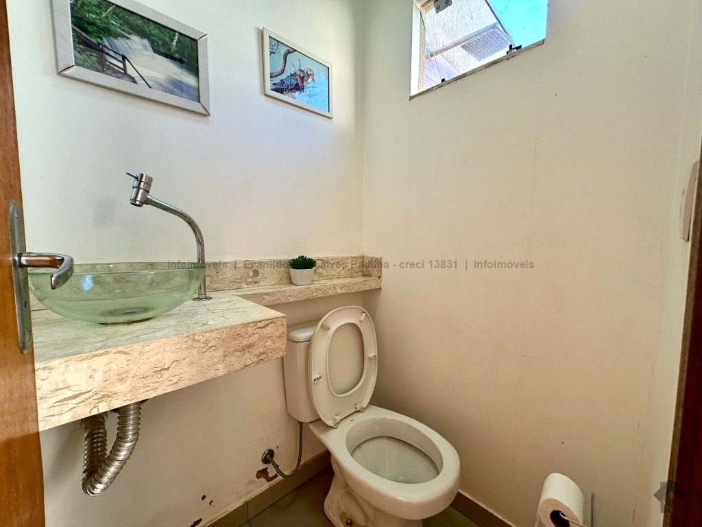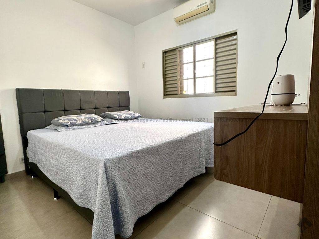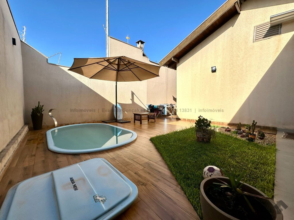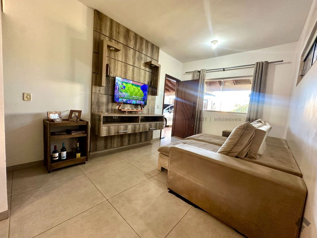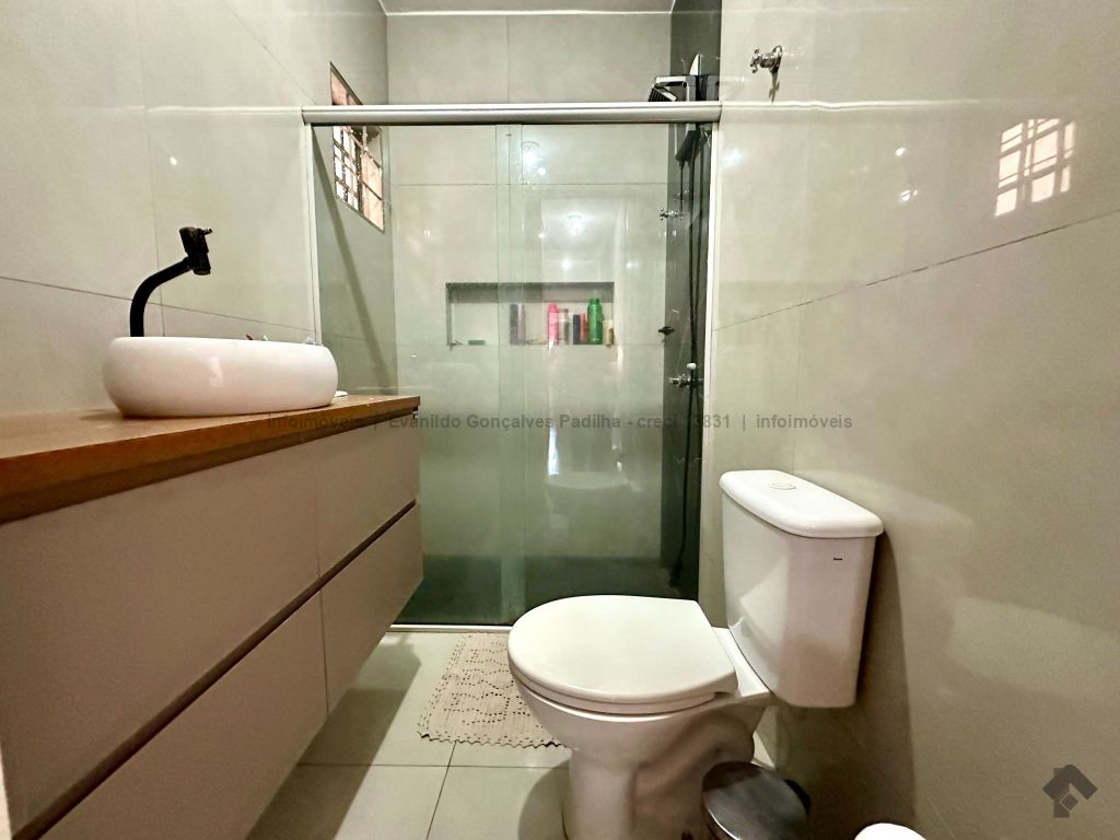 Com 250m² de área total e 188m² de área construída, três quartos sendo uma suíte com closet, WC social, sala de TV com painel embutido, sala de jantar, cozinha estilo americana e com armários planejados, lavanderia ampla e toda planejada, área de lazer bem ampla, churrasqueira toda revestida, pia e bancada em mármore e um lavabo, despensa, corredor lateral, piscina e boa sobra de quintal nos fundos.