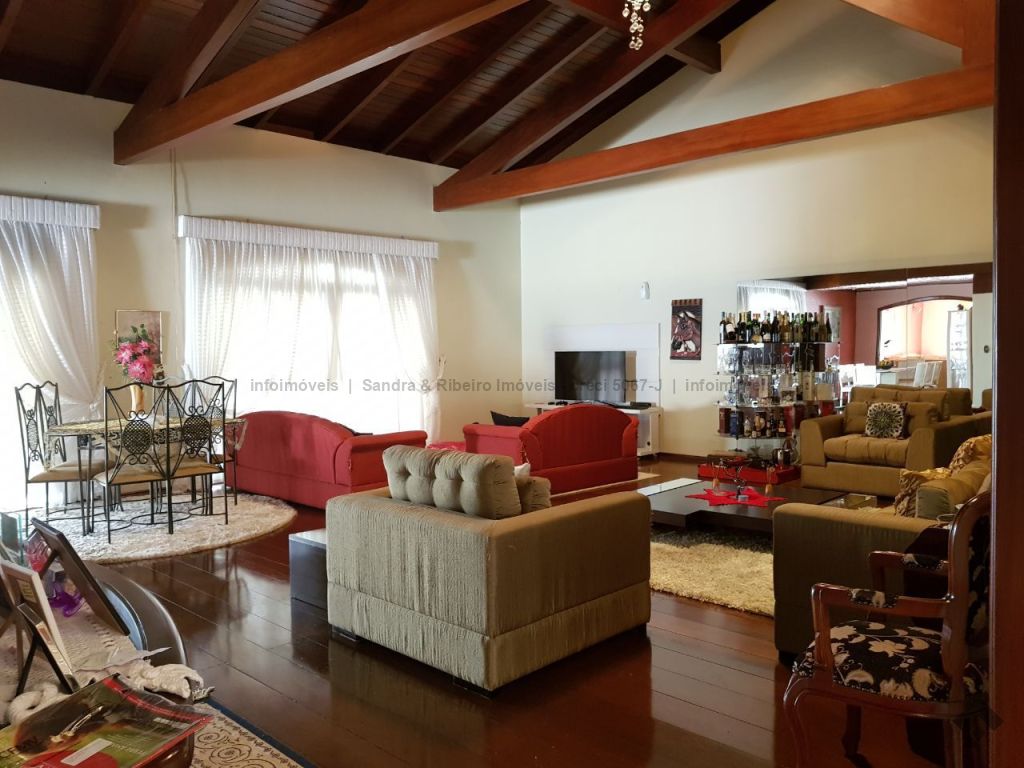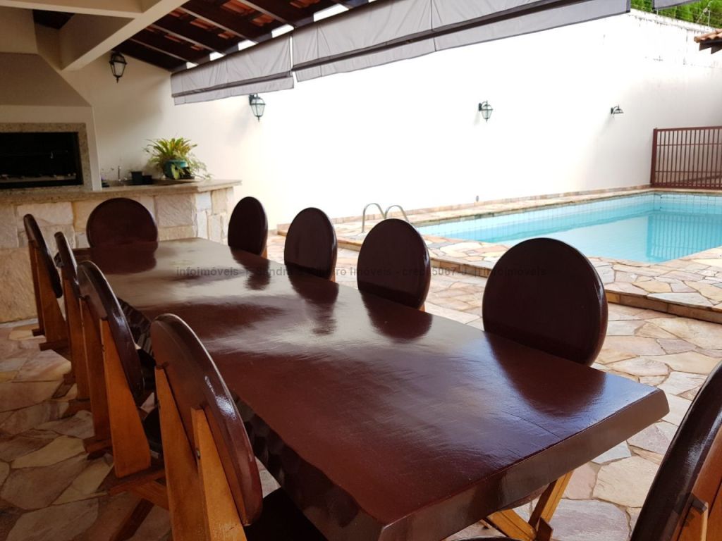 Pé direito alto, acabamento com madeira de lei na cobertura e piso, armários embutidos de madeira, ampla área de varanda, varanda com churrasqueira, piscina grande.