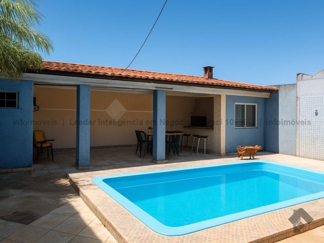 Varanda gourmet de 55 m², perfeita para reunir a família. Piscina 3 x 5 x 1,40 m, lazer garantido. 2 quartos amplos, cozinha funcional, sala aconchegante e banheiro moderno. Garagem para, no mínimo, 3 carros.
