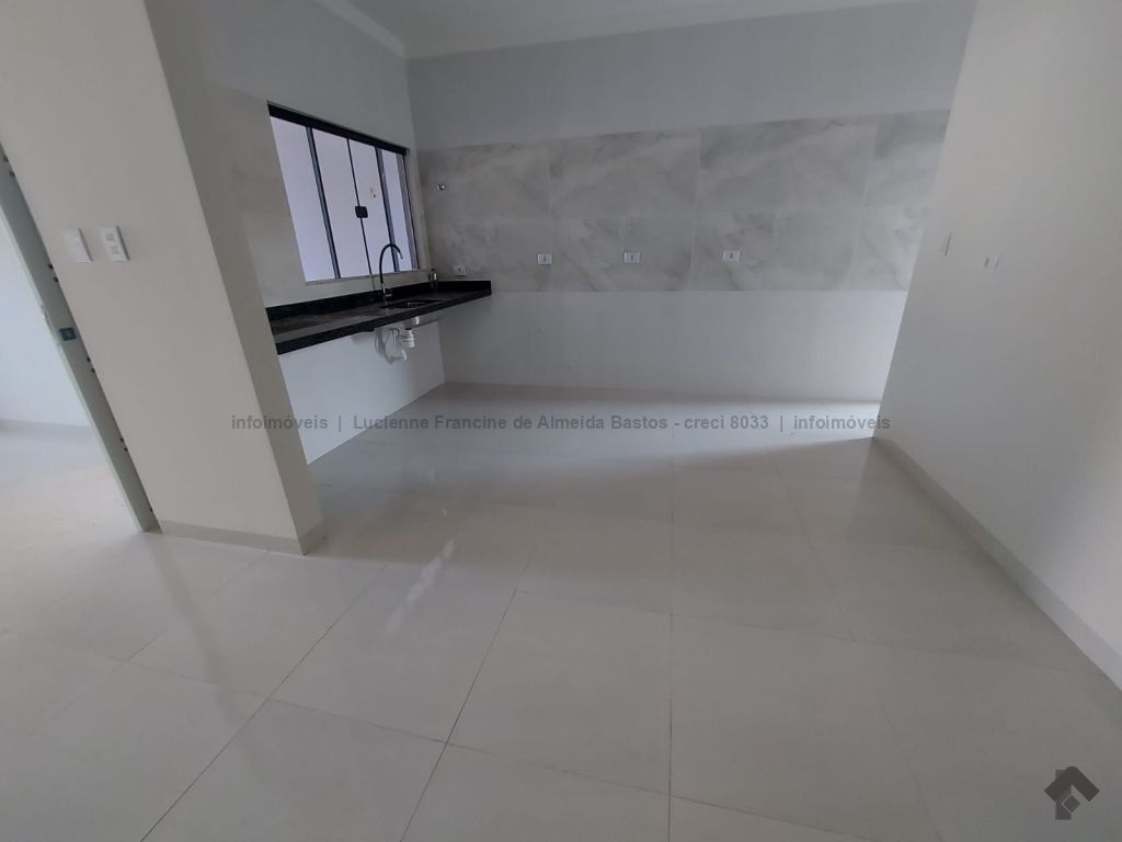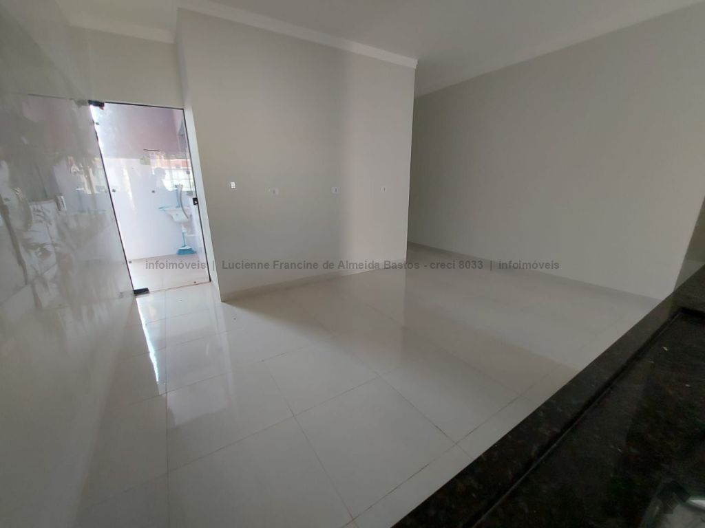 Casa com alto padrão de acabamento e projeto arquitetônico diferenciado. Ambientes aconchegantes e espaçosos. Espaço na frente para carro. Forro de gesso rebaixado e iluminação em LED. Todos os cômodos com iluminação natural e janelas grandes. Sala de estar com possibilidade de mesa de jantar. Cozinha espaçosa com saída para área de serviço. Suíte e quartos com espaço para cama e guarda roupas. Possibilidade de área gourmet e espaço para piscina.