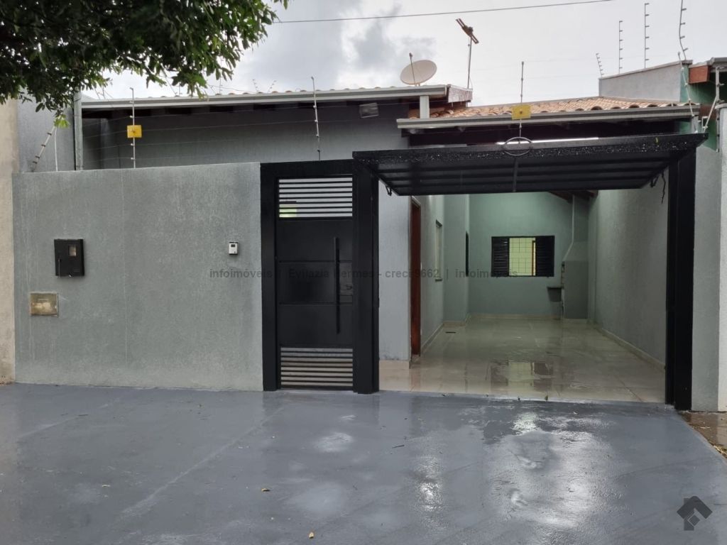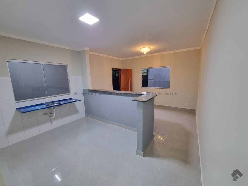 Casa com uma suíte, dois quartos, sala, cozinha, banheiro social e lavanderia coberta.