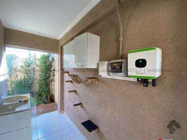 Casa térrea, nascente, com área construída de 114m², e terreno de 300m². Sala para 02 ambientes com painel para TV, 01 banheiro social, 02 quartos sendo 01 suíte com painel de TV, cozinha com móveis planejados, lavanderia coberta, espaço gourmet com churrasqueira, edícula ao fundo com quarto e banheiro, amplo espaço de lazer com piscina, jardim com paisagismo e garagem coberta para 02 carros. Além disso conta com diversos investimentos estruturais como sistema de energia solar, reservatório de água, cerca elétrica, portão automatizado e sistema de câmeras.