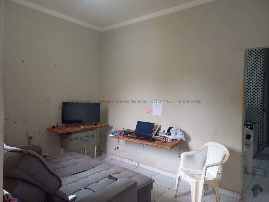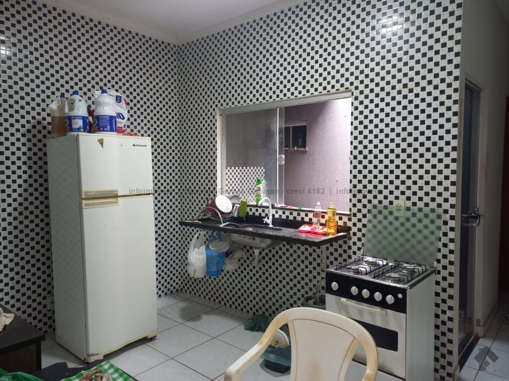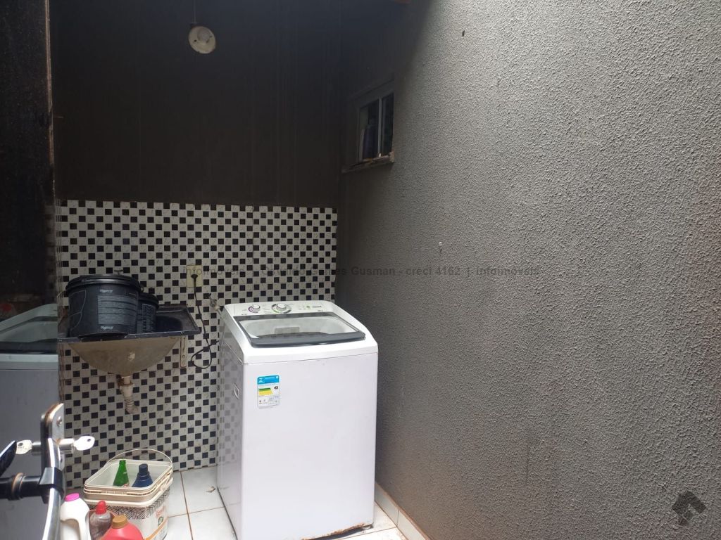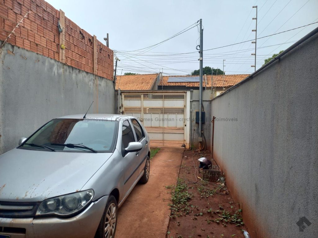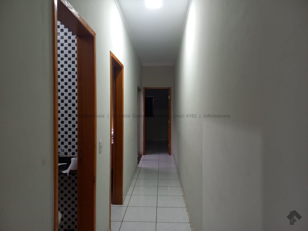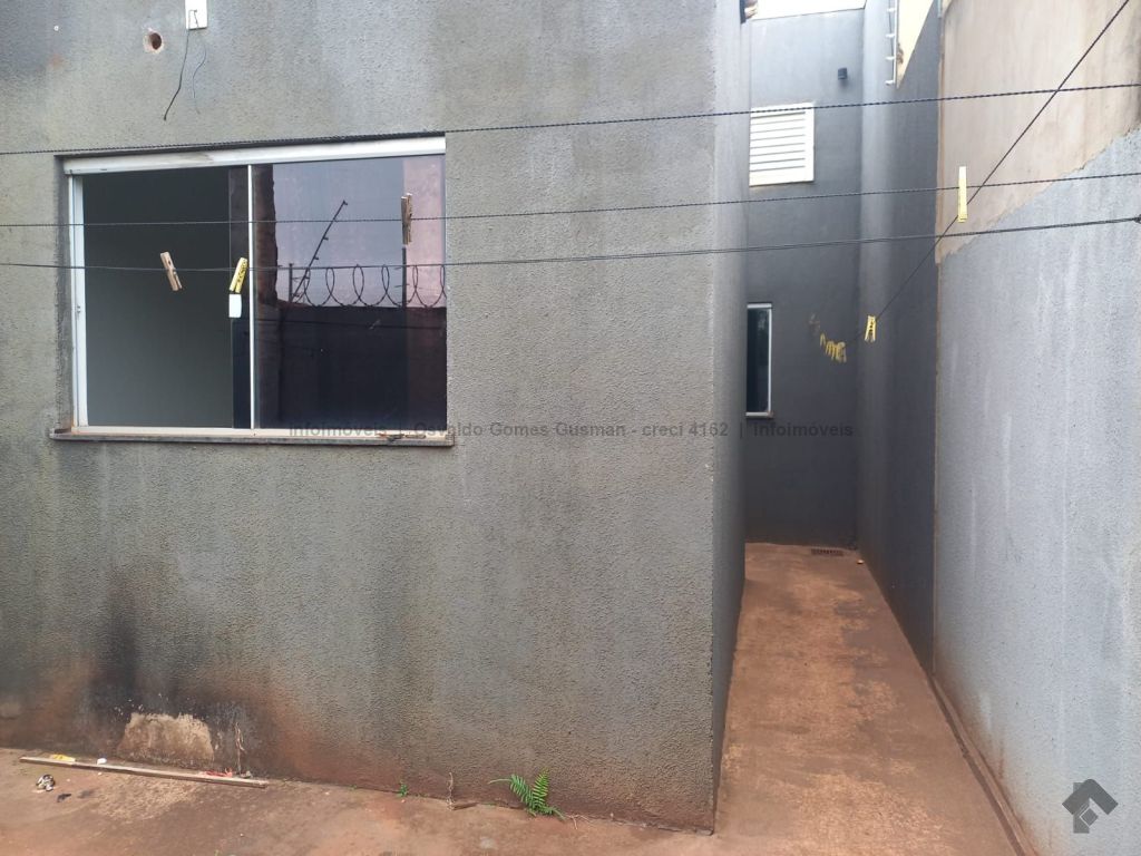 Casa térrea contendo três quartos, sendo um quarto com armário embutido, banheiro social, cozinha, lavanderia, duas vagas de garagem e jardim.