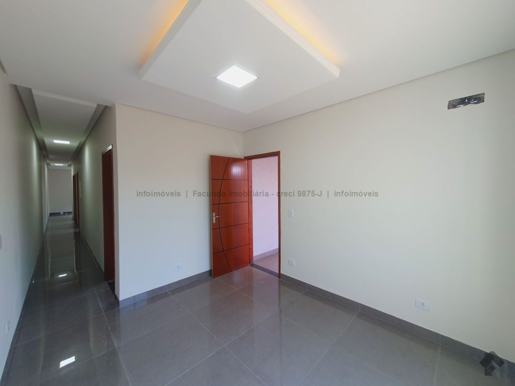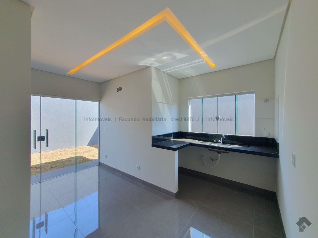 Conta com 1 suíte mais 2 quartos, banheiro social, sala, cozinha integrada com área gourmet, lavanderia, sobra de quintal nos fundos e 1 vaga de garagem não coberta.