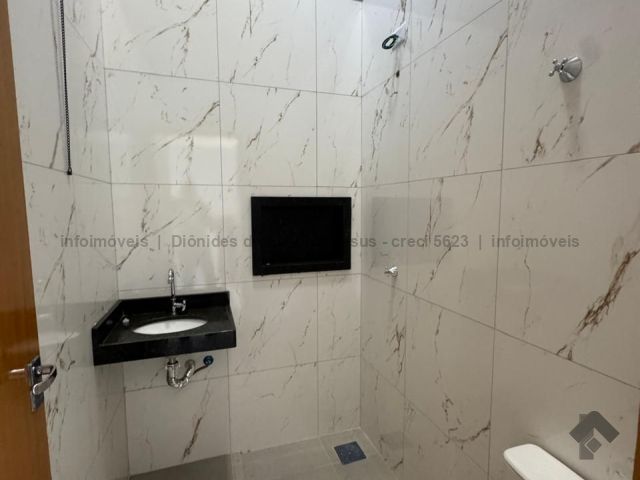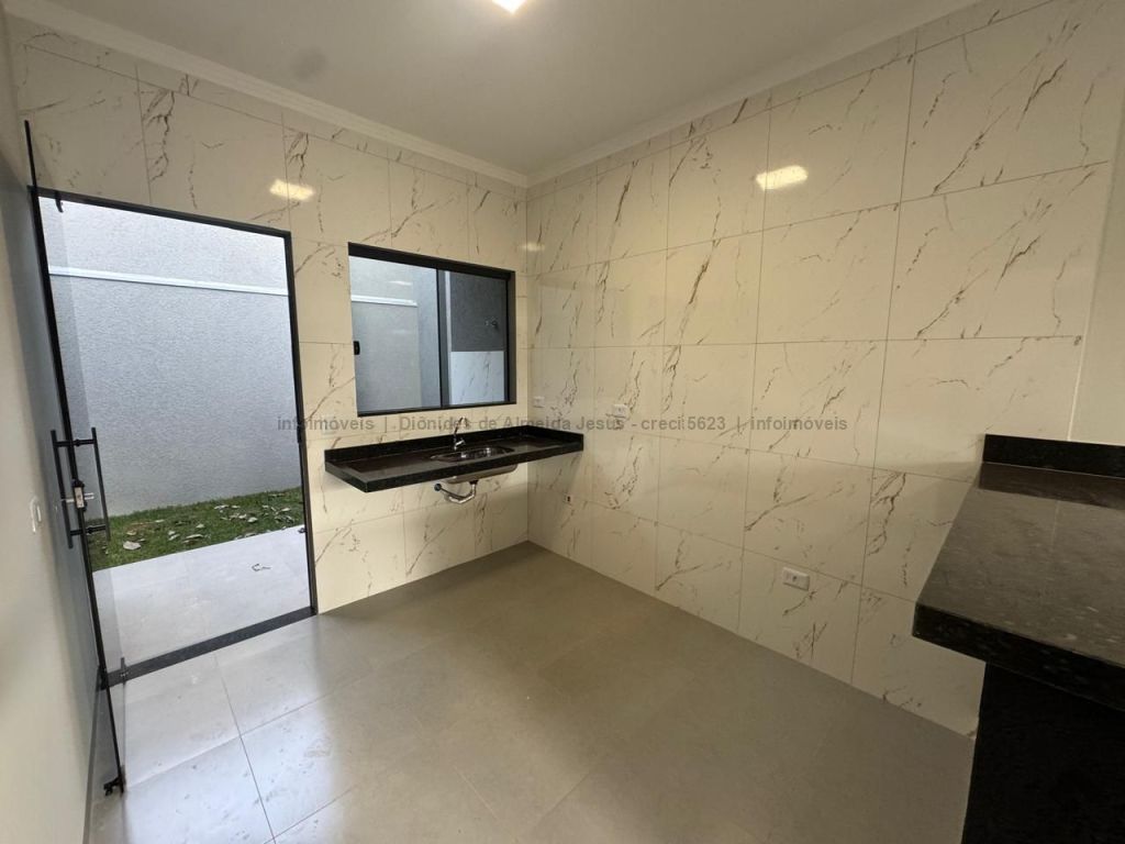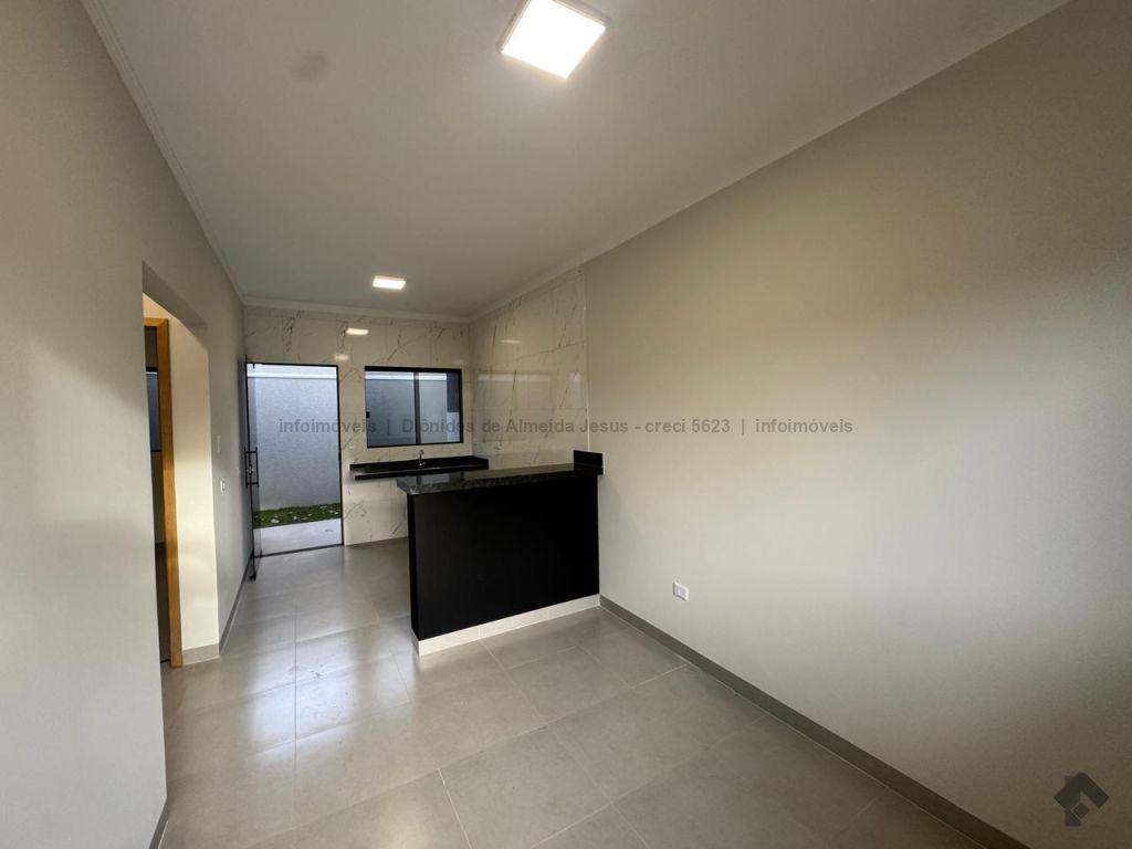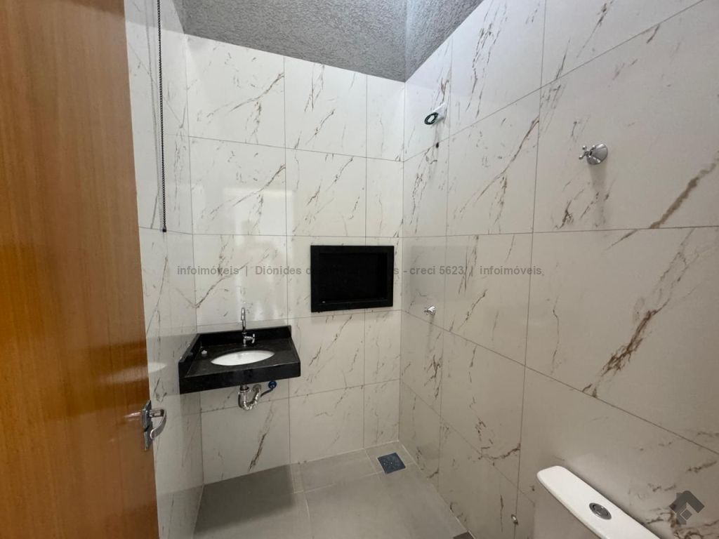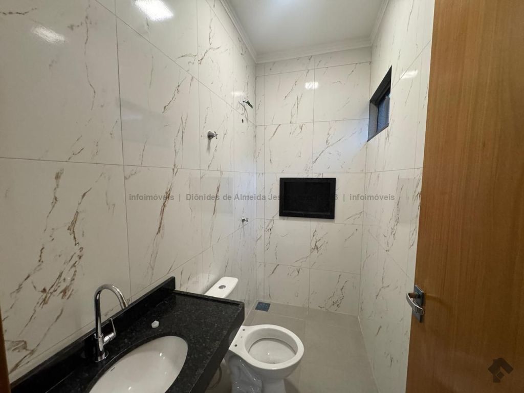 Todo de laje com detalhe em gesso, pia e balcão da cozinha, pias dos banheiros e nichos em granito, portas da sala, cozinha e janelas em vidro temperado, cozinha e banheiros revestidos, piso e revestimento em porcelanato, rodapé embutido, corredor lateral e espaço no fundo, parte permeável gramada.