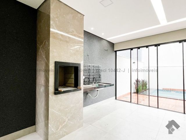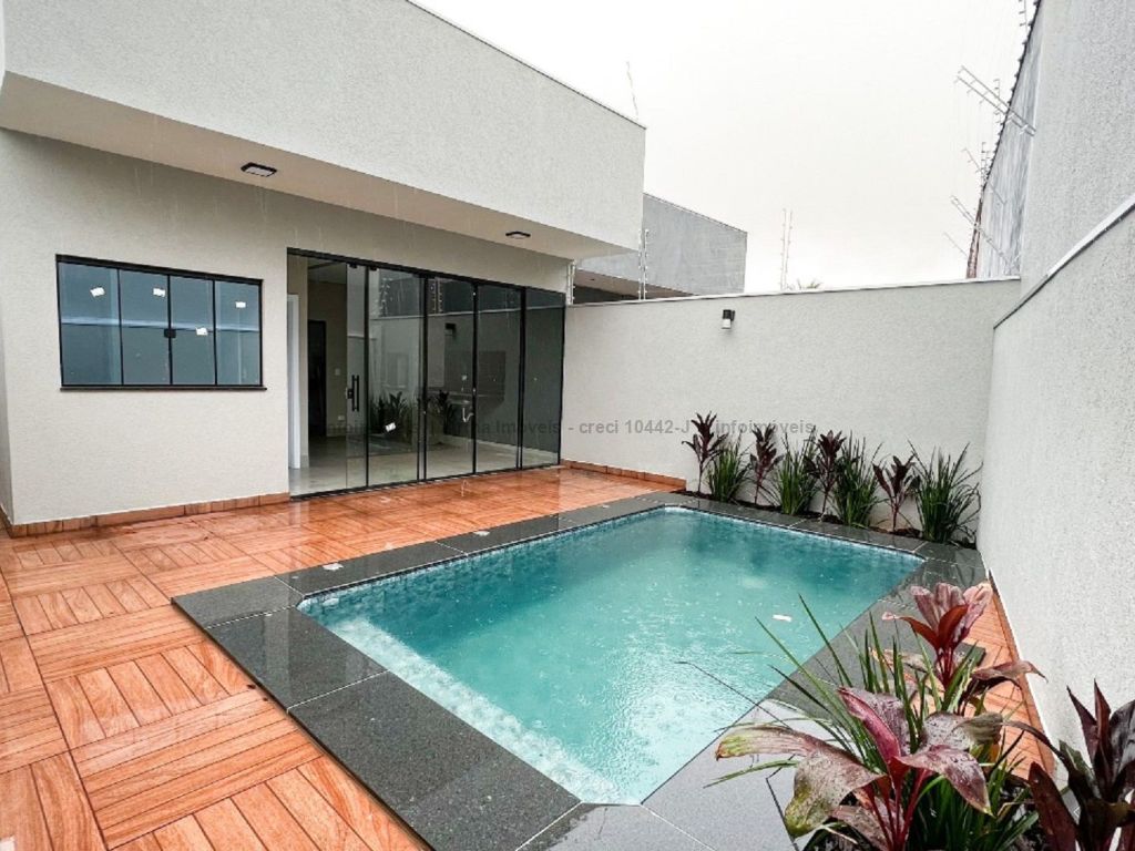 Casa moderna e com piscina. Sala de estar, sala de jantar, 1 suíte, 2 quartos, 1 banheiro social, 2 vagas de garagem, área de lazer, área de serviço, churrasqueira, área gourmet, cozinha ampla, pé direito duplo, piscina, lavabo e jardim de inverno.