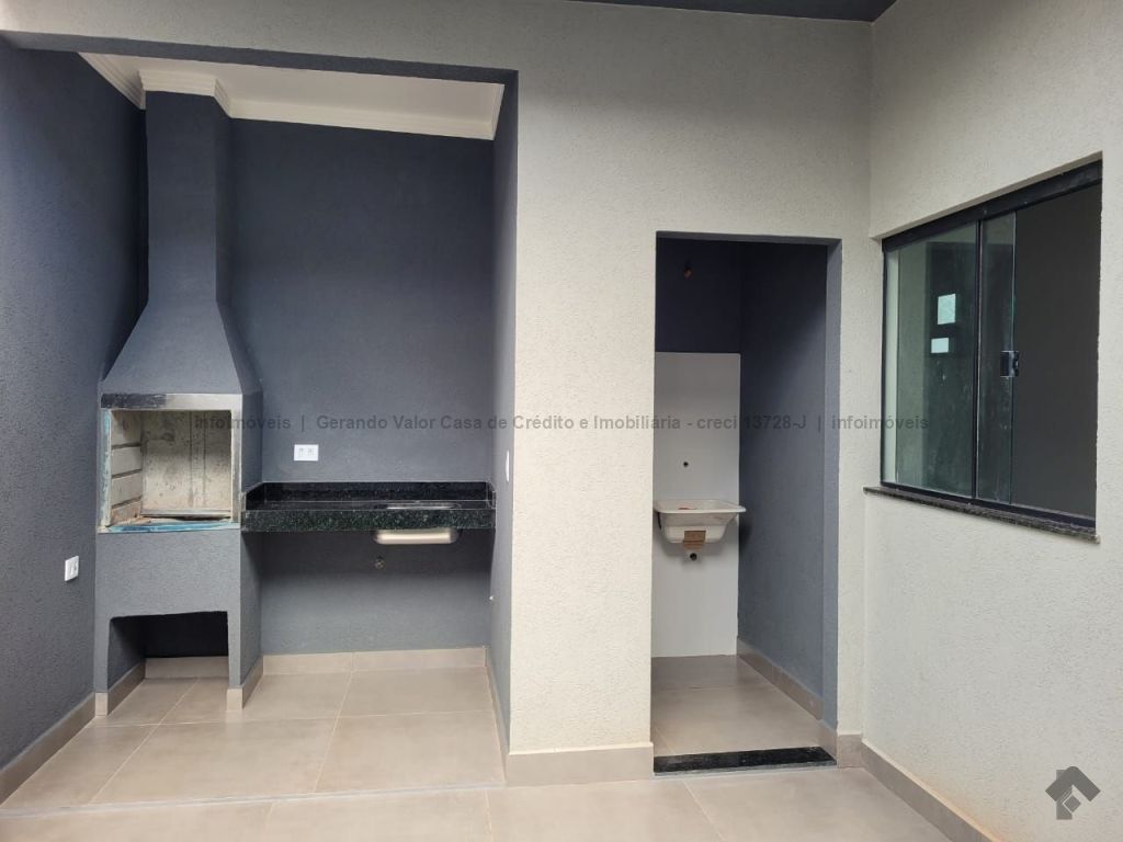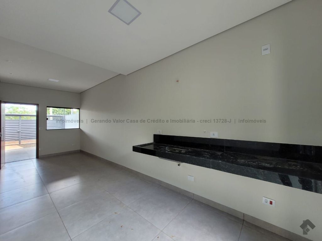 Área construída de 68,75 m², área total de 120 m², uma sala, uma cozinha, dois quartos sendo uma suíte, um banheiro social, lavanderia coberta, duas vagas de garagem sendo uma coberta, concertina, área gourmet, corredor lateral, área de serviço coberta, portão de elevação e portão social.