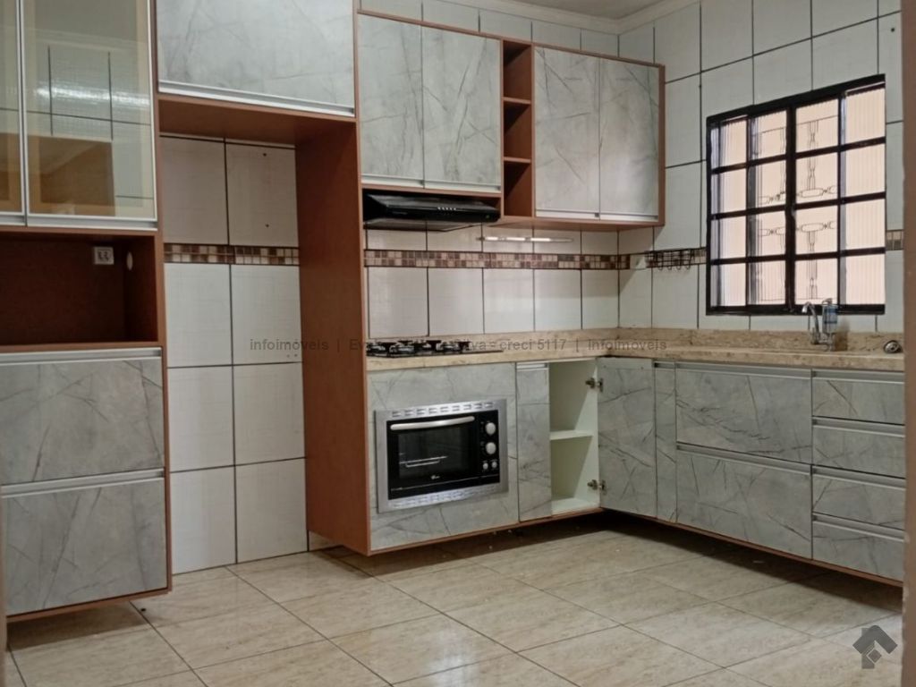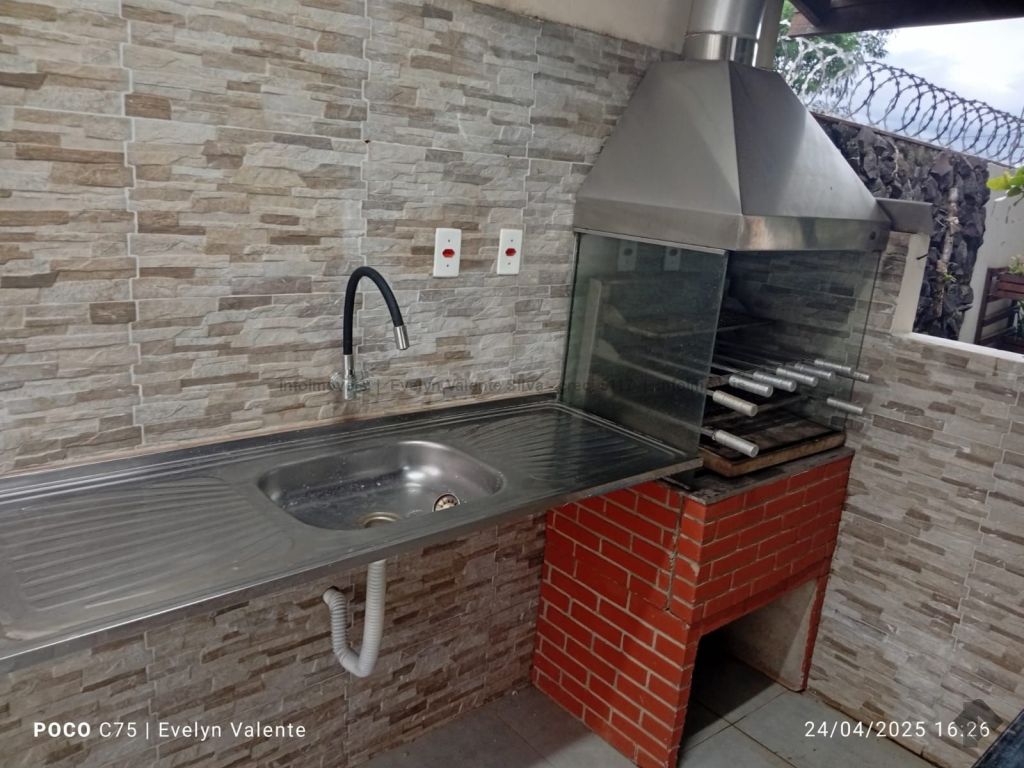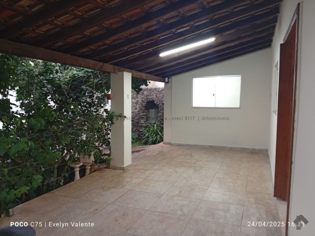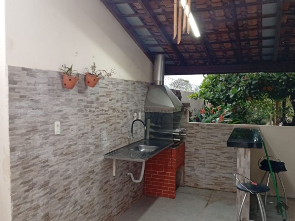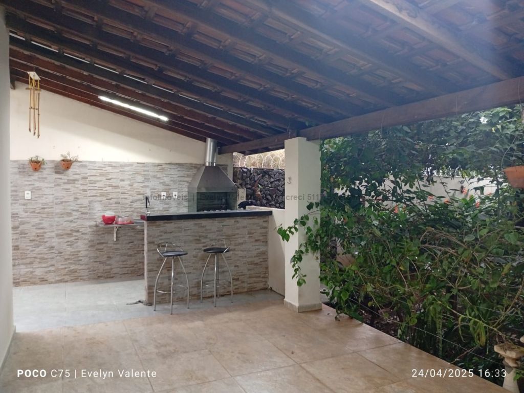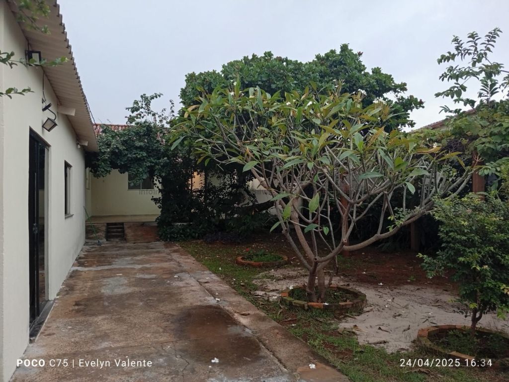Possui três quartos, sendo uma suíte com espaço para closet, cozinha ampla, varanda coberta com espaço gourmet, lavanderia coberta, edícula espaçosa na frente, banheiro social, sala de TV, sala de jantar, gruta com altar da Nossa Senhora, várias árvores frutíferas, espaço para ampliação e piscina privativa.