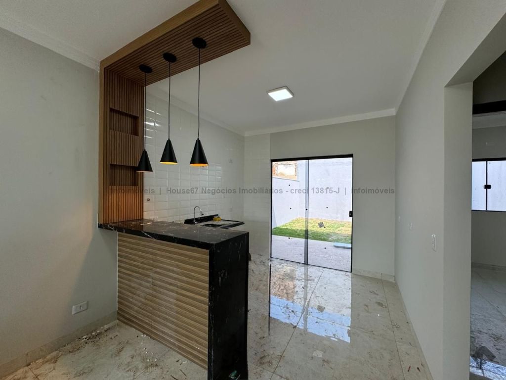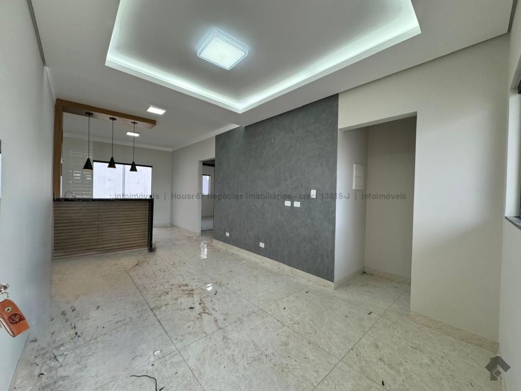O imóvel possui 180m² de terreno, 82m² de construção, duas vagas descobertas, sala ampla, cozinha americana com bancadas e balcão, uma suíte, dois quartos, um WC social, jardim de inverno, área de serviço, amplo espaço de quintal para futuras ampliações. Rico em acabamentos, porcelanato, gesso, iluminação, toda em laje.