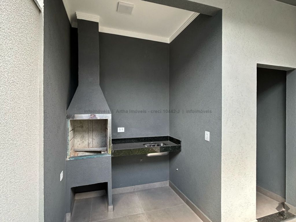 Excelente casa térrea com 02 quartos, sendo 01 suíte, 01 banheiro social, cozinha integrada com porta de correr em blindex em 03 lâminas. Área gourmet coberta com pia e churrasqueira. Lavanderia coberta e reservada. Acabamento em gesso e iluminação em LED.