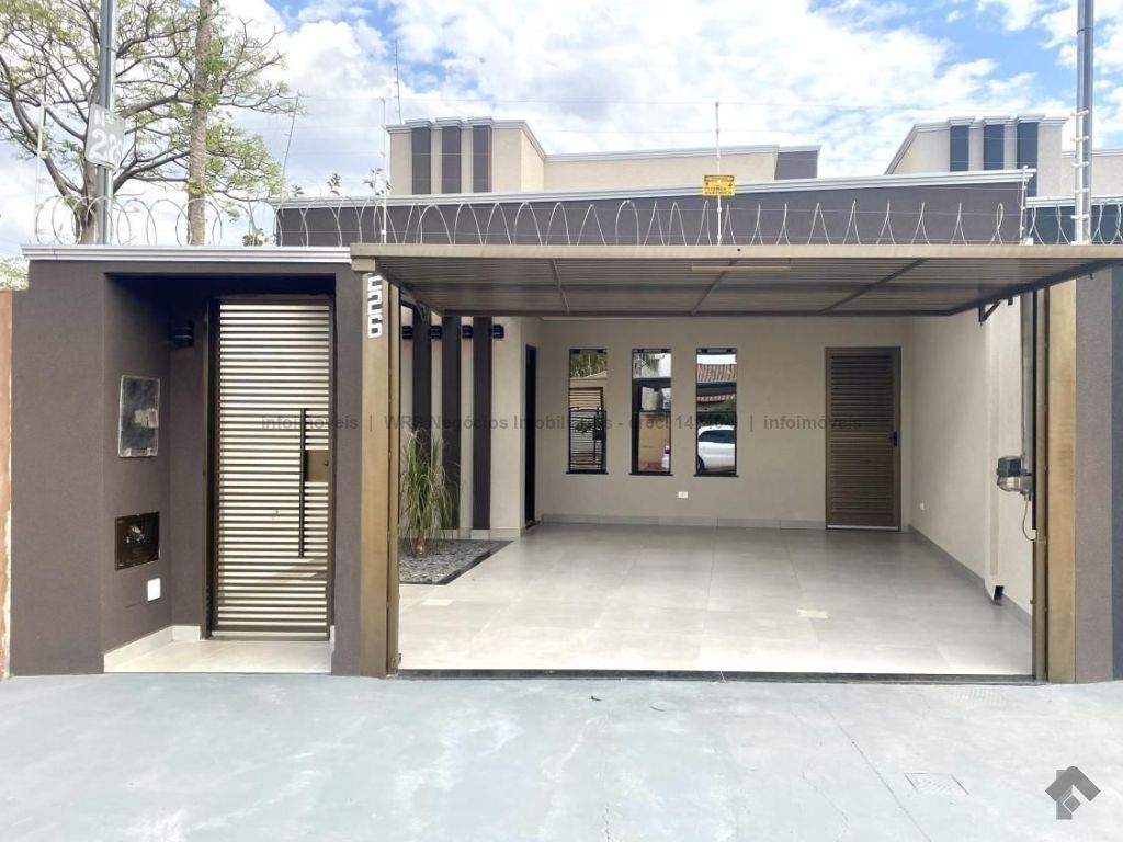 Linda casa com suíte com closet, dois quartos, sala com gesso rebaixado e iluminação em LED, área gourmet com churrasqueira, garagem para até dois carros cobertos com pergolado, sobra de terreno nos fundos, toda em gesso rebaixado e piso porcelanato.