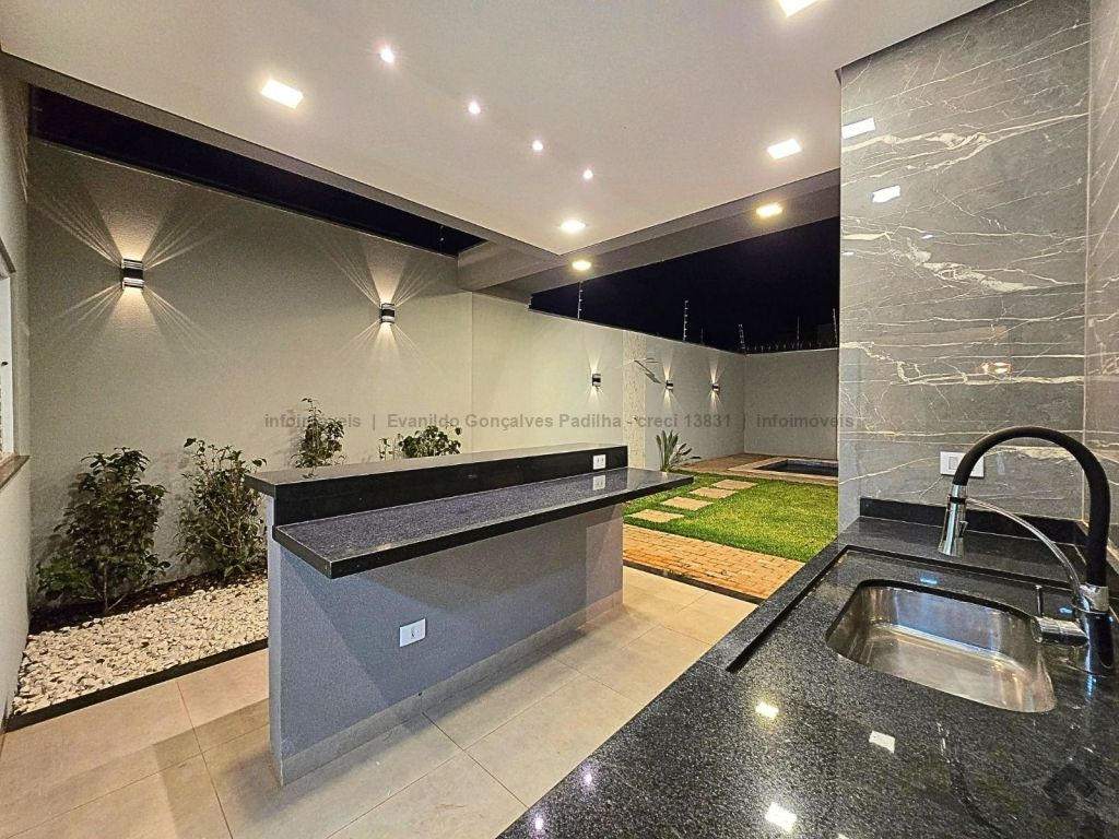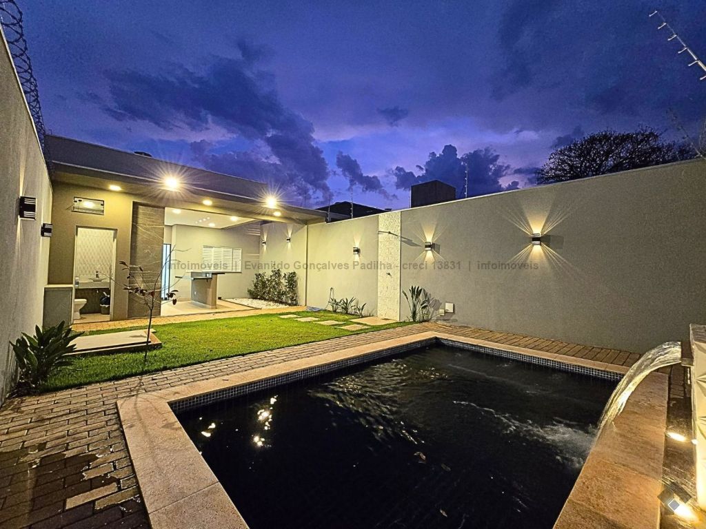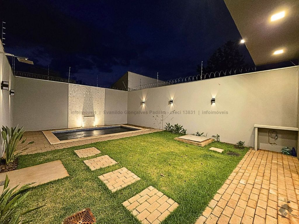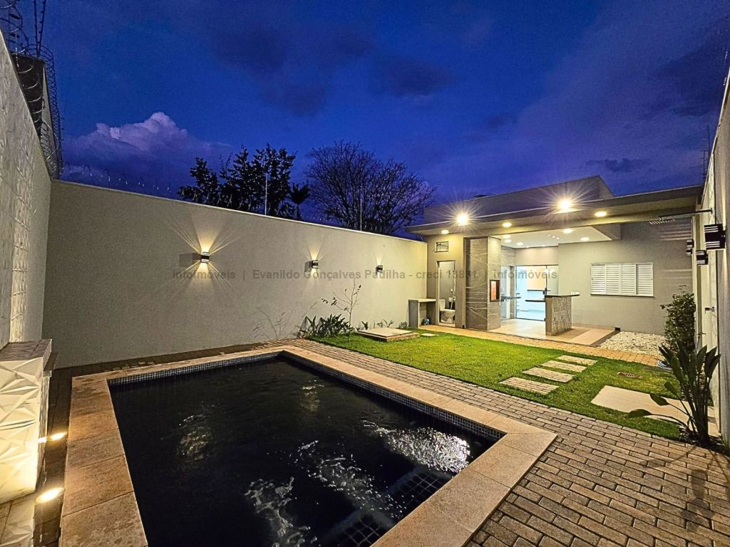 Lindo imóvel com planejados e piscina no Jardim Itatiaia. Fachada moderna com película de vidro, 230 m² de área total, 126 m² de área construída, 3 vagas de garagem, sala ampla para 2 ambientes com pé direito duplo, painel, rica em sanca, iluminação em LED e lustre, 3 quartos sendo 1 suíte (1 quarto com armário e suíte com armários), banheiro social com box e armários, cozinha americana toda revestida com pia em mármore e planejados, jardim de inverno, espaço gourmet completo com churrasqueira, pia e bancada, lavabo externo, piscina de alvenaria com prainha, hidromassagem e cascata, sobra de quintal nos fundos, preparação para água quente, cerca elétrica.