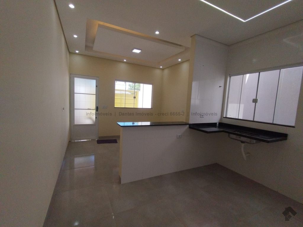 Excelente opção de casa térrea, dispõe de 01 suíte e 01 quarto, banheiro social, sala de TV com integração à cozinha, vagas de garagem para 02 veículos, área de serviço e espaço de quintal aos fundos.