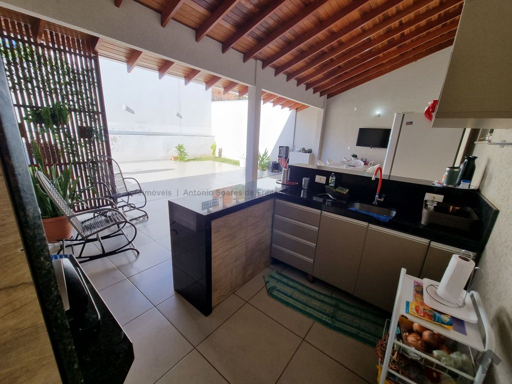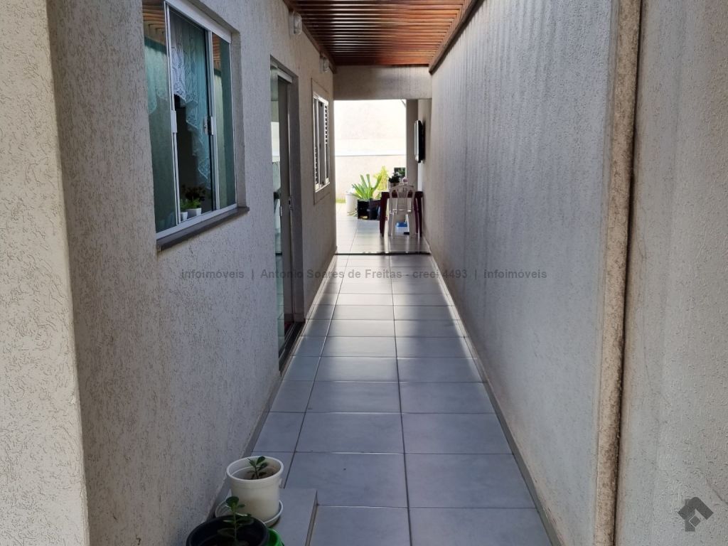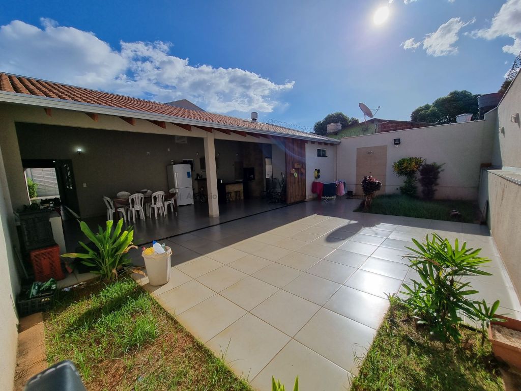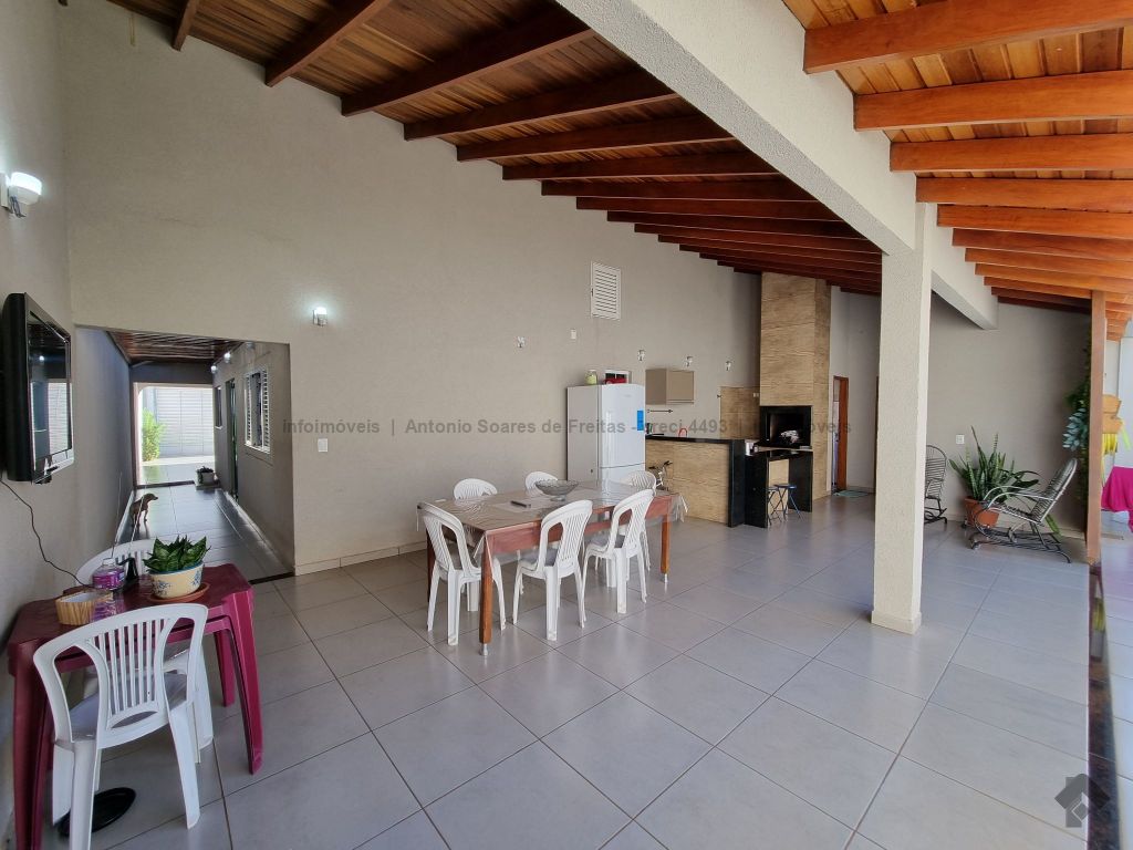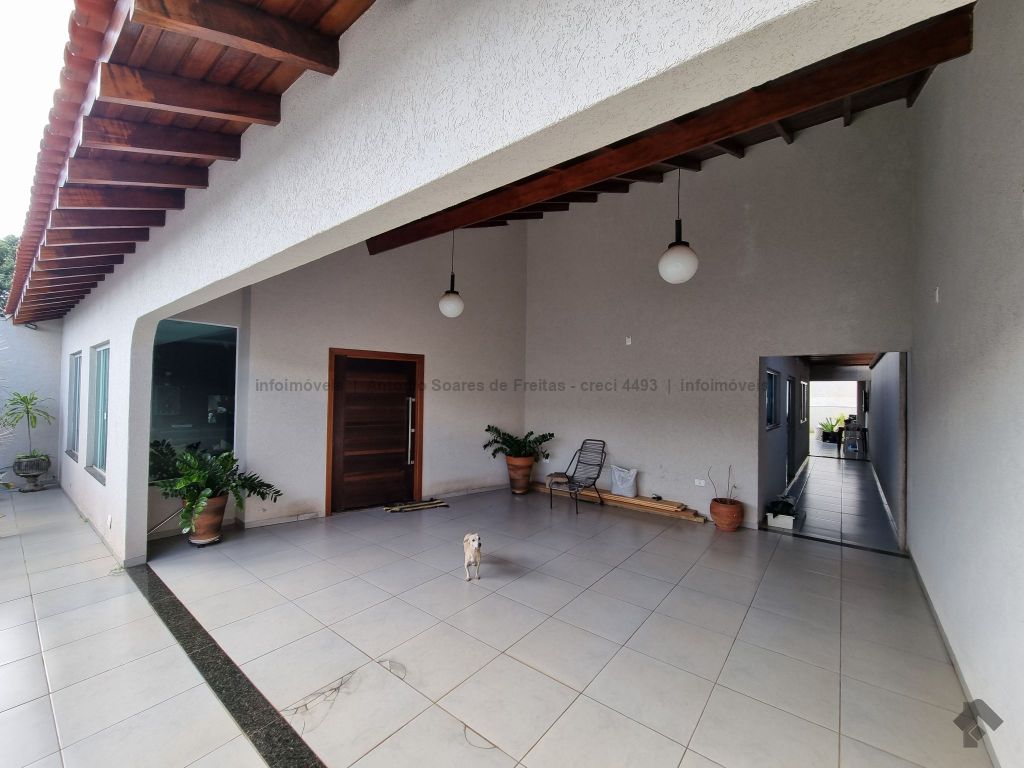 01 suíte, 02 quartos com a/e, sala ampla, banheiro social, garagem coberta e descoberta, cerca elétrica, 02 varandas, espaço gourmet com churrasqueira, terreno grande aos fundos.
