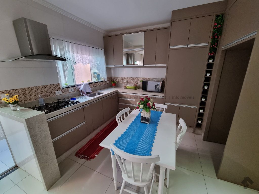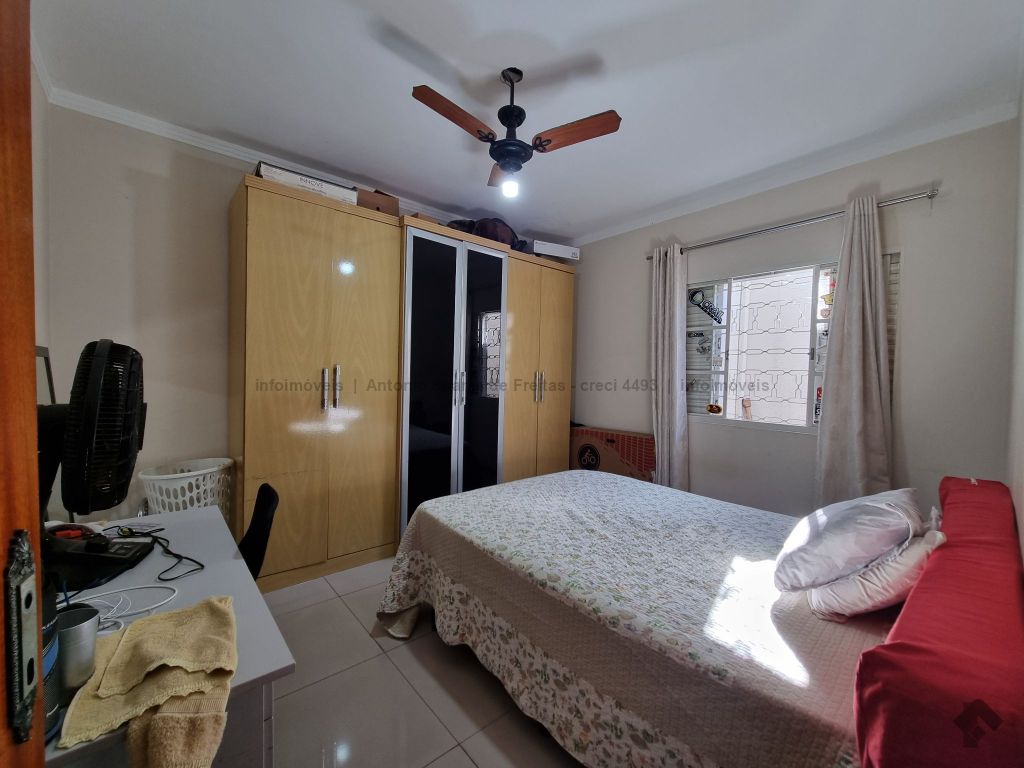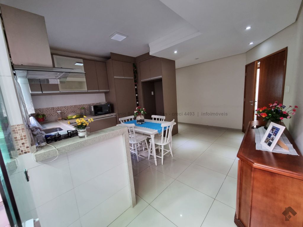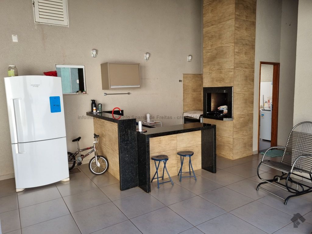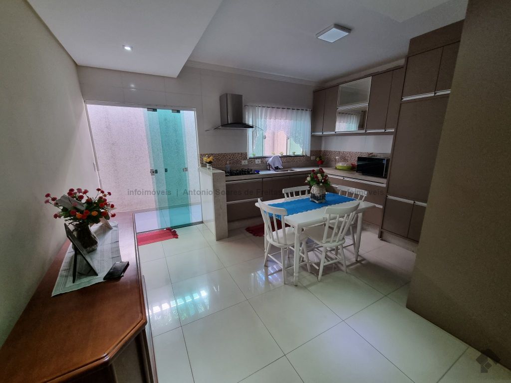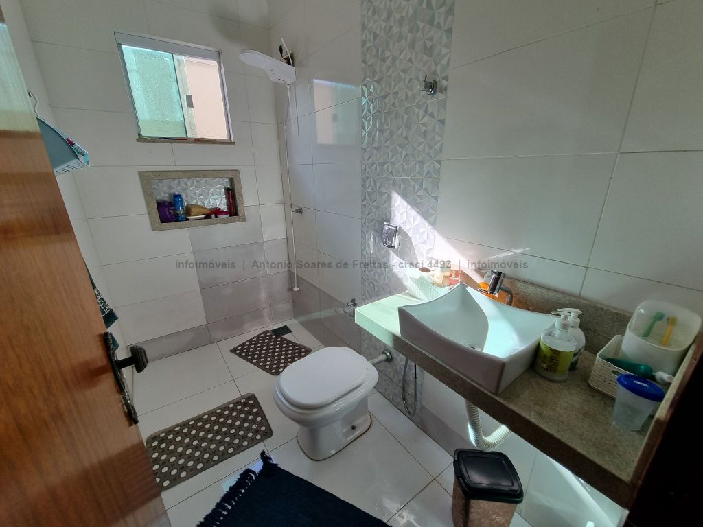 01 suíte, 02 quartos com a/e, sala ampla, banheiro social, garagem coberta e descoberta, cerca elétrica, 02 varandas, espaço gourmet com churrasqueira, terreno grande aos fundos.