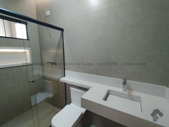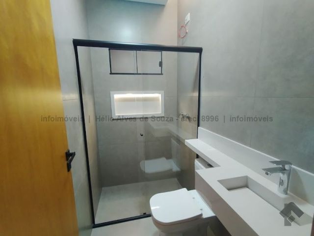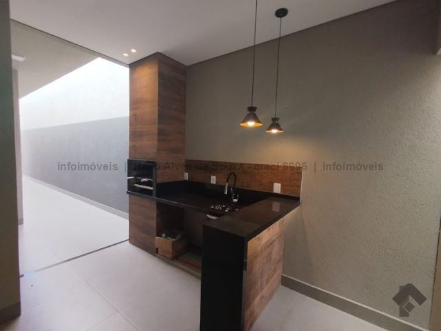 Belíssima casa com área construída de 100 m², terreno com 180 m², três quartos, sendo um deles uma suíte, sala de TV, sala de jantar, cozinha independente da sala, acabamento em mármore preto na cozinha e na área gourmet e banheiros em mármore branco, todas as torneiras monocomando, porcelanato, vidros temperados em todos os ambientes, pré-instalação de água quente, pré-instalação para ar condicionado em todos os ambientes, área gourmet com churrasqueira, cerca elétrica e alarme, concertina nos muros, portão de elevação e interfone, garagem para dois carros, sendo um coberto, teto com rebaixamento em gesso e iluminação em LED, box no banheiro, pé direito duplo, acabamento de alto padrão.