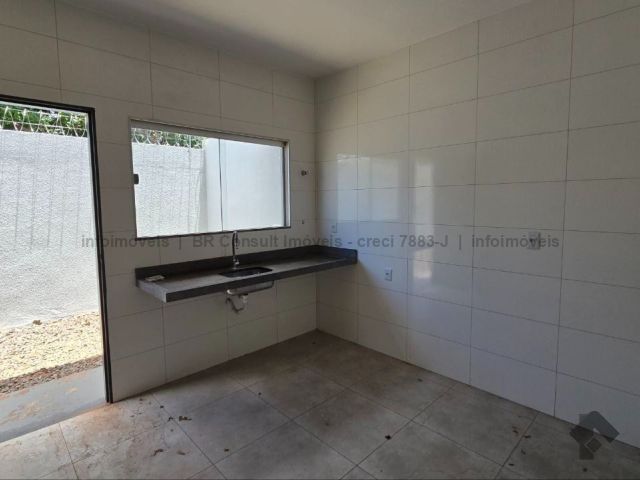 Casa nova, ótimo acabamento, com 2 quartos, 1 suíte, sala de estar, cozinha, 1 banheiro social, área de serviço e 1 vaga de garagem.