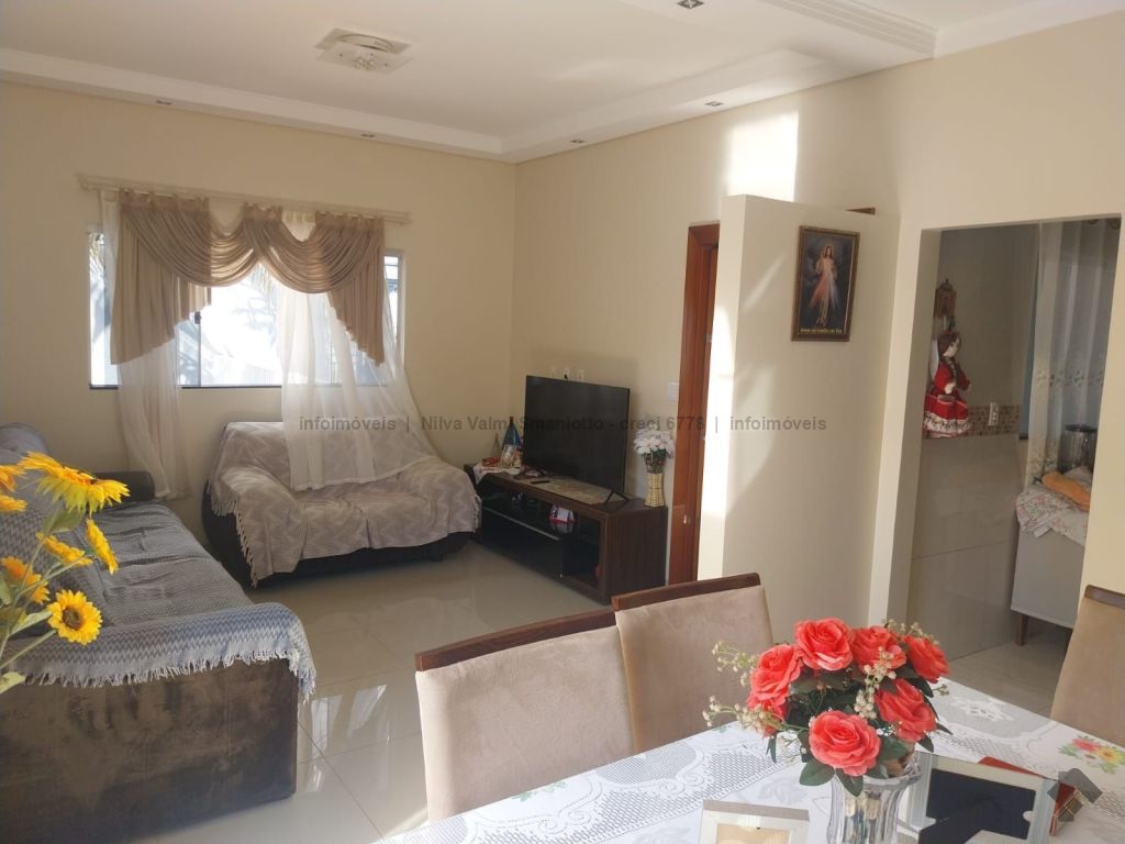 Casa ampla com cômodos grandes, sendo duas cozinhas, uma externa com lavanderia, acesso à entrada e saída para o fundo com vidro temperado, cozinha interna ampla, três quartos grandes sendo um suíte, um banheiro social, sala para dois ambientes, estar e jantar, espaço gourmet no fundo onde possui churrasqueira, pia, bancada, quarto e banheiro, duas vagas de garagem coberta e duas descobertas, amplo quintal no fundo, portão de elevação com motor, via pavimentada, rede de esgoto, casa toda de laje, todos os cômodos amplos e aconchegantes.