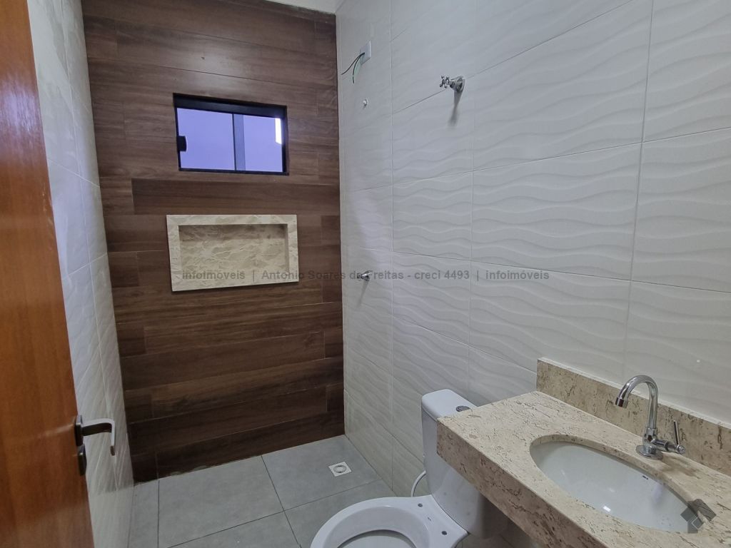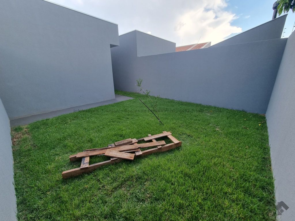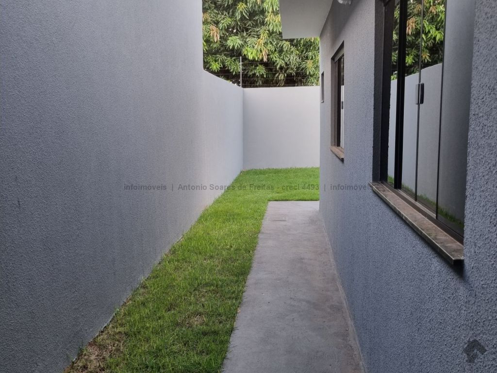 Linda casa com fachada moderna e imponente. Possui porcelanato, rodapés embutidos, sanca e molduras em gesso, cerca elétrica, concertina, jardim, terreno amplo e gramado aos fundos, garagem coberta e descoberta e portão de elevação. Composta de 1 suíte, 1 quarto, banheiro suíte e social, azulejados e azulejos decorativos, pia em mármore e nicho embutidos. Sala de estar/jantar com painel de tv, cozinha ampla com pia e bancada em mármore integrada com área gourmet com churrasqueira e pia em mármore. Corredor, área de serviço coberta e amplo terreno gramado aos fundos.