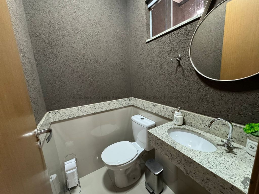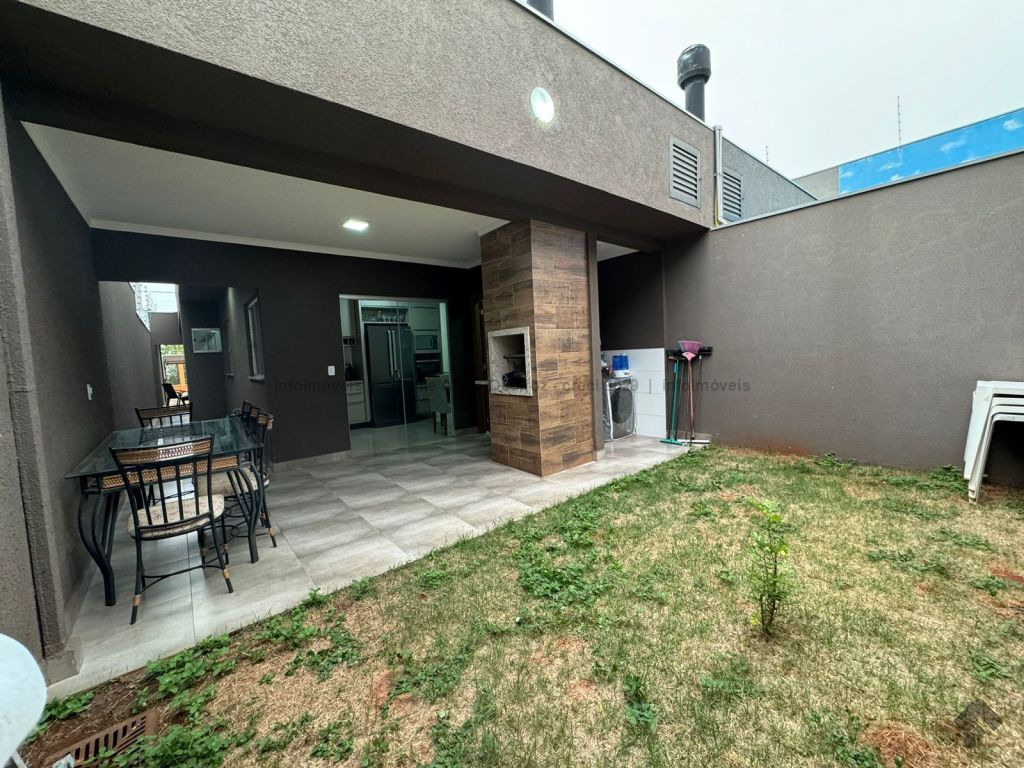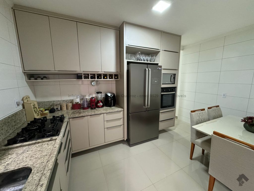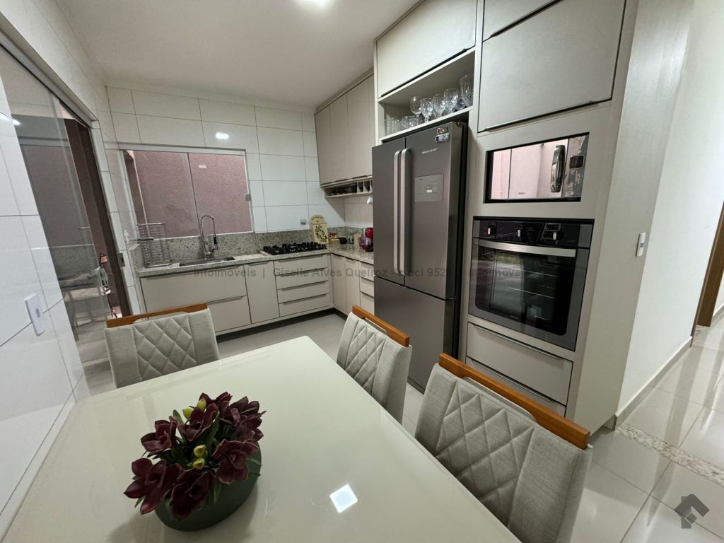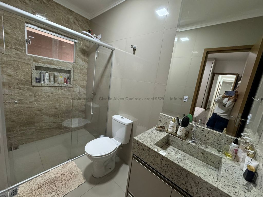 3 quartos sendo 1 suíte e 2 demi-suítes, vaga para 3 carros, área de serviço, churrasqueira, cozinha planejada, lavabo na área gourmet, lavanderia, quintal, rico em blindex, porcelanato e mármores, parte interna toda com planejados (quartos, banheiros, sala e cozinha), placa solar, sistema de segurança (câmeras, alarmes e cerca elétrica).
