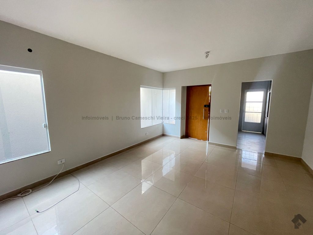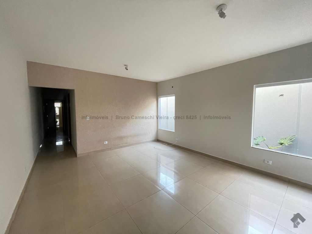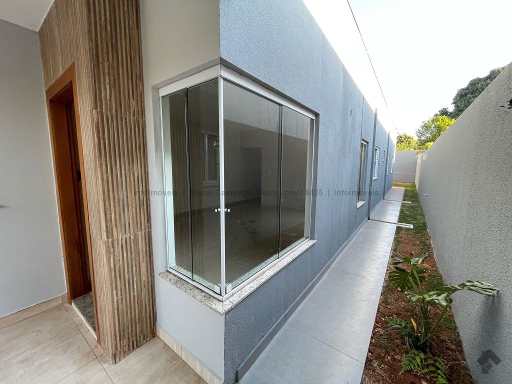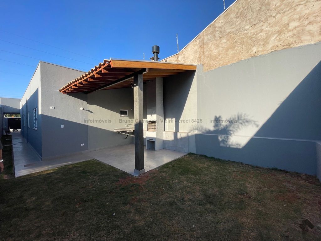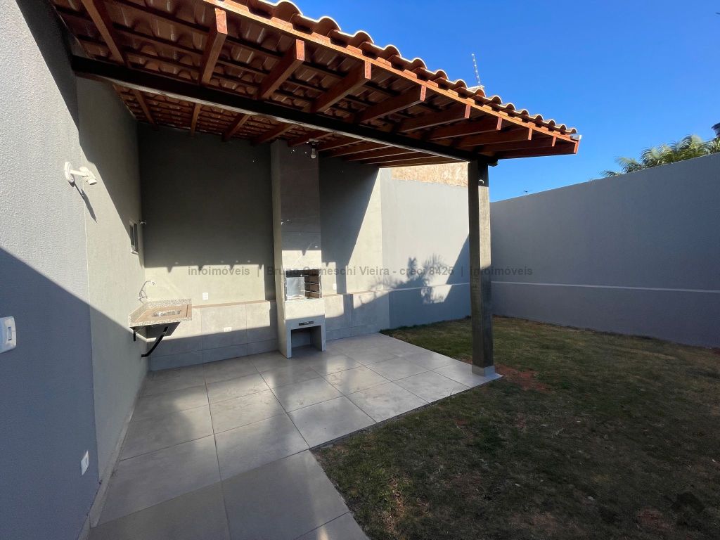 A casa possui 3 quartos, sendo um deles suíte, sala ampla para 2 ambientes, cozinha com armários planejados, garagem coberta para um carro, área de serviço externa, fundo amplo, piso da casa todo em porcelanato.