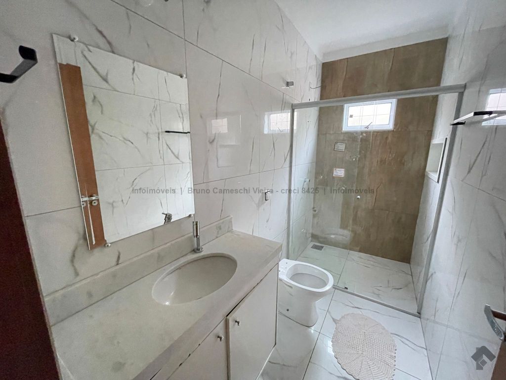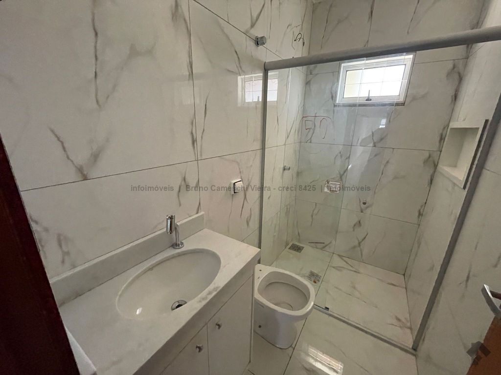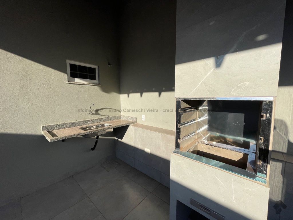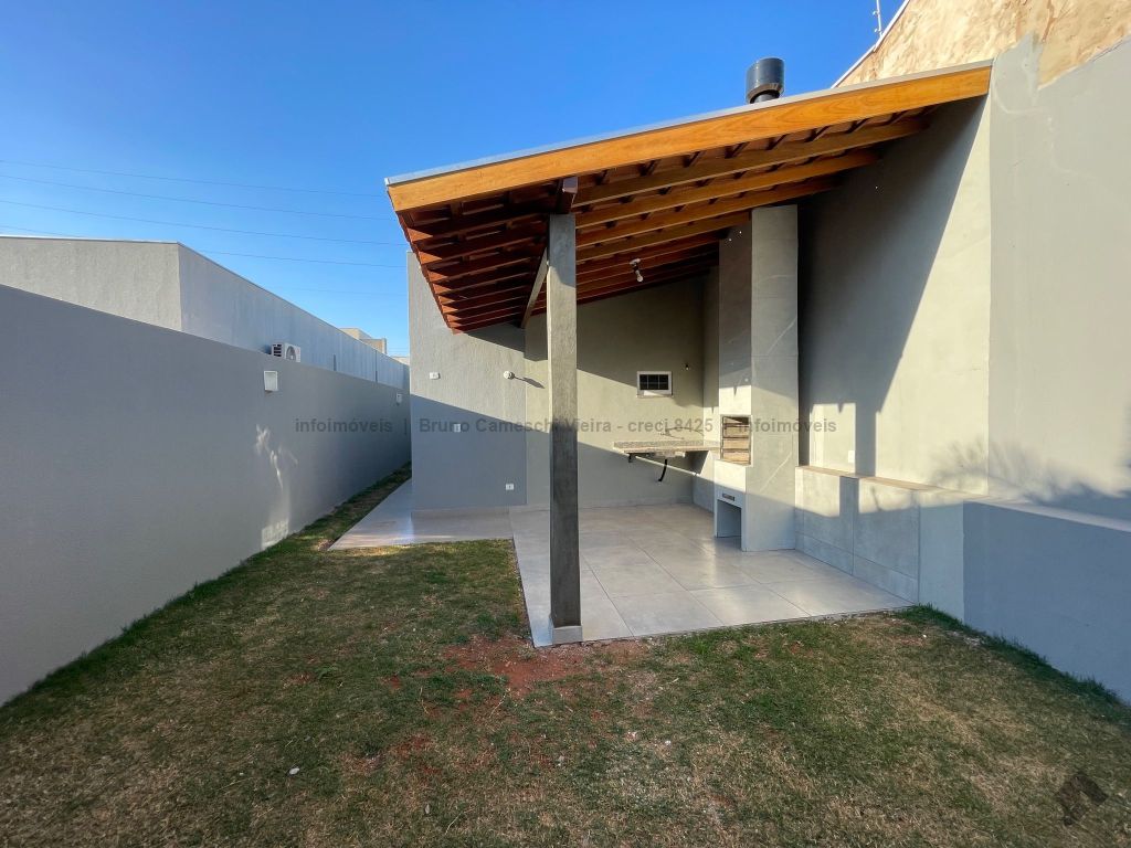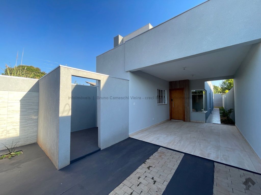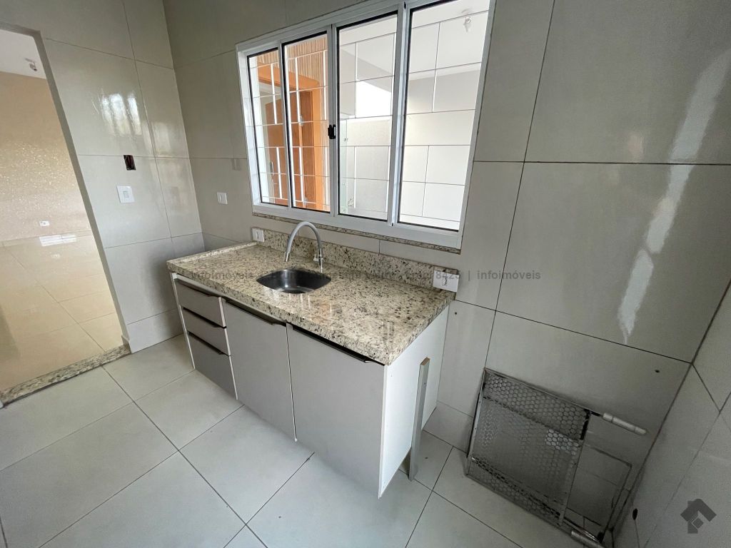 A casa possui 3 quartos, sendo um deles suíte, sala ampla para 2 ambientes, cozinha com armários planejados, garagem coberta para um carro, área de serviço externa, fundo amplo, piso da casa todo em porcelanato.