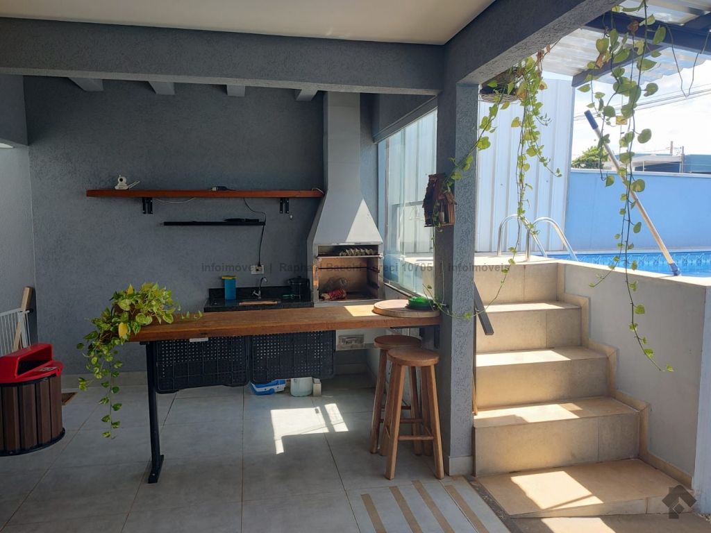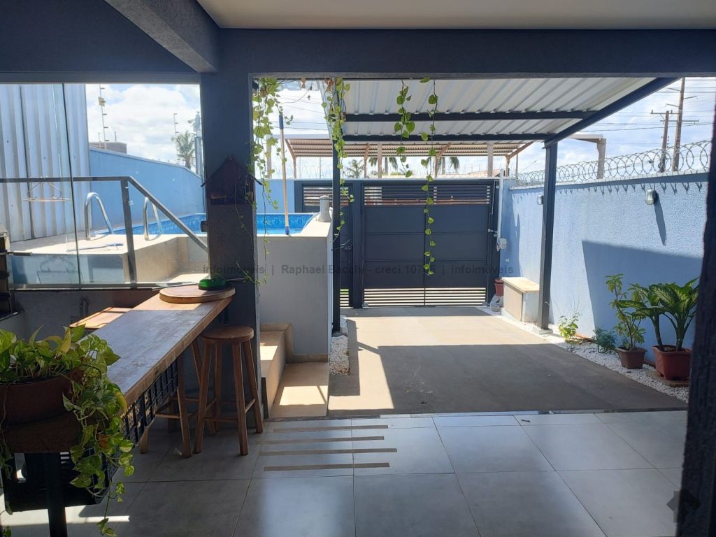 Casa térrea, 3 quartos sendo 1 suíte, área gourmet, piscina e edícula. Garagem coberta para 2 carros, piso porcelanato.