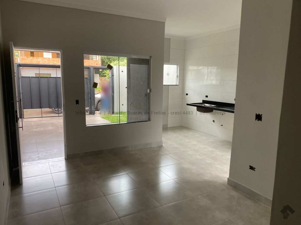 02 quartos sendo 1 suíte, sala ampla, cozinha, banheiro social, garagem coberta e descoberta, terreno aos fundos.