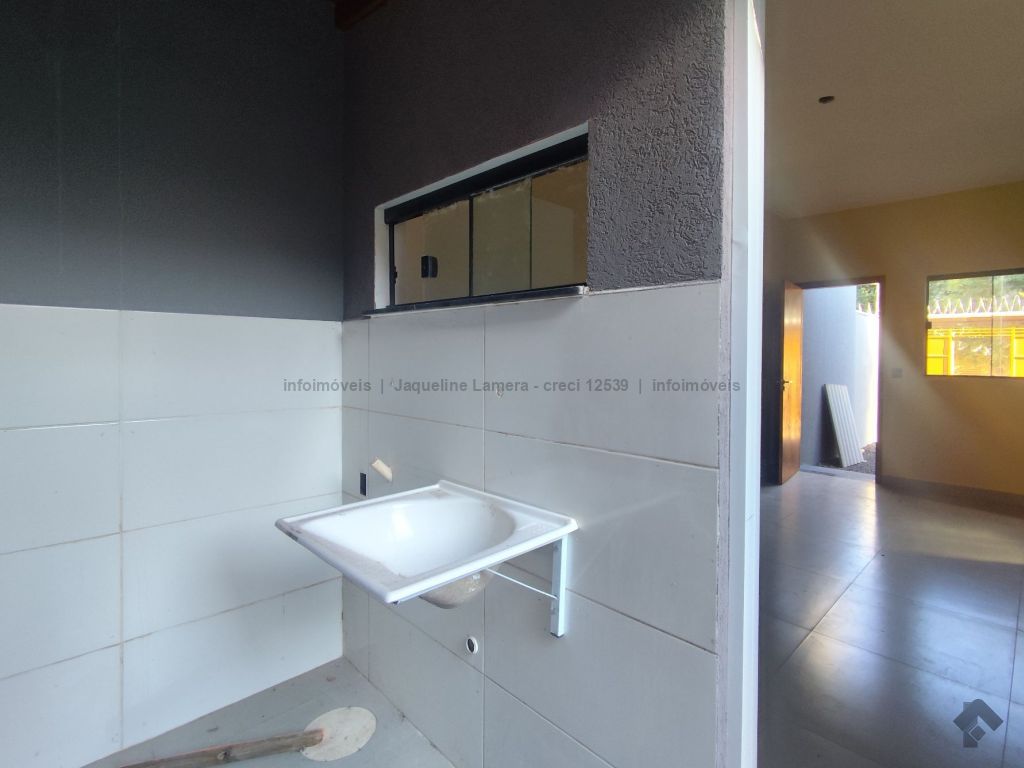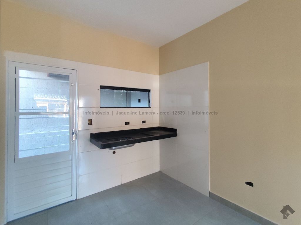 Casa com dois quartos, sala e cozinha integrada, banheiro social, área de serviço coberta. Uma vaga de garagem.