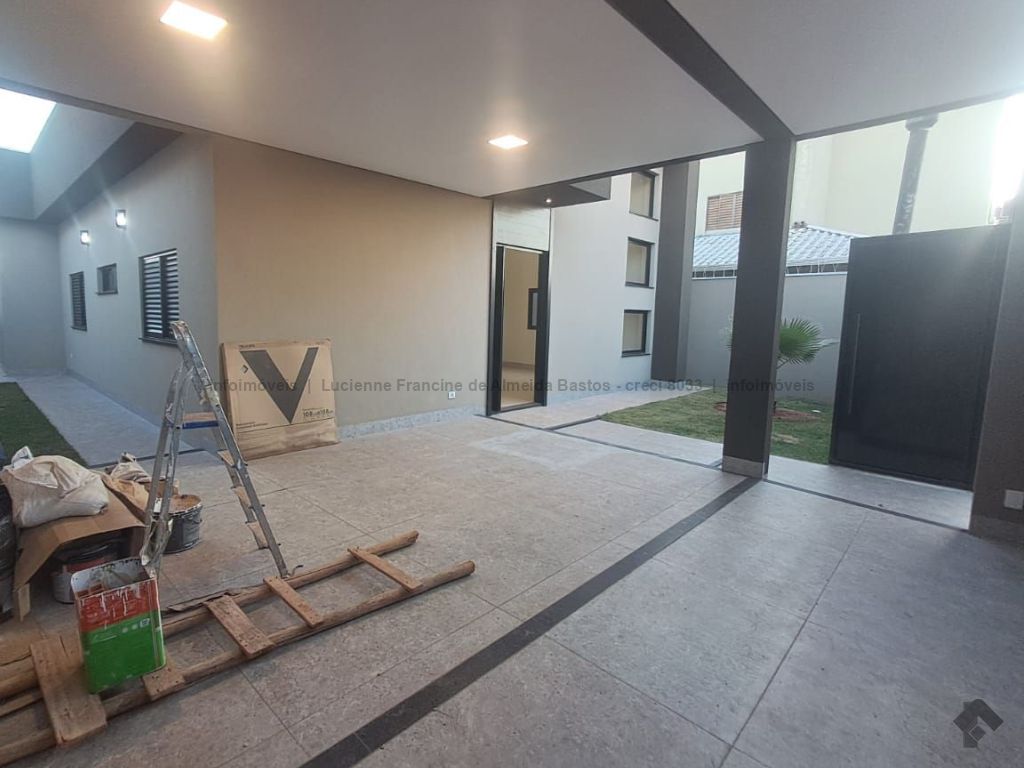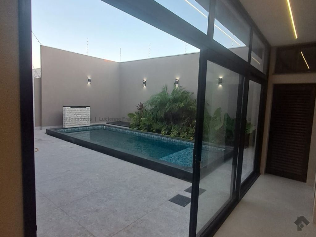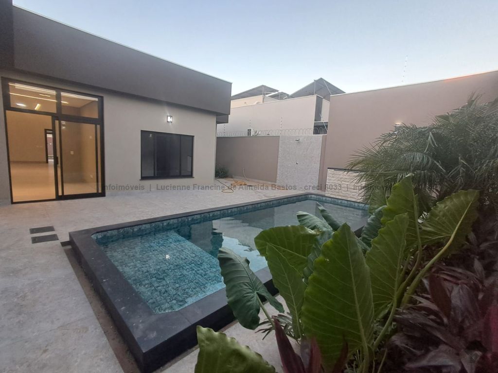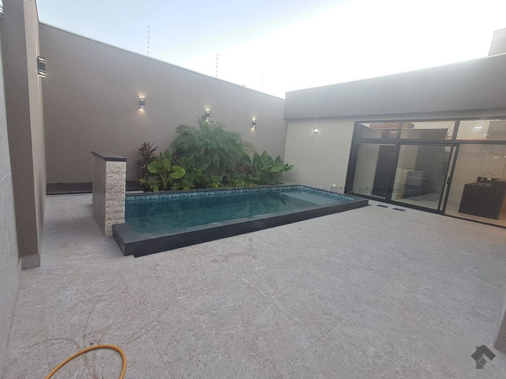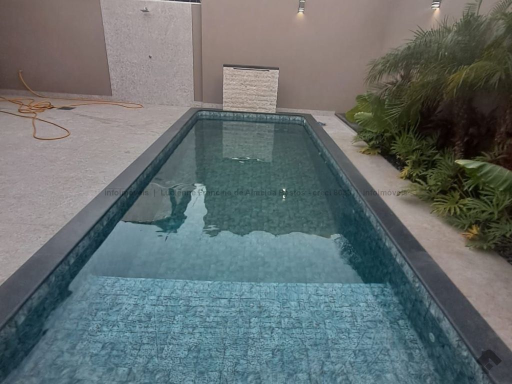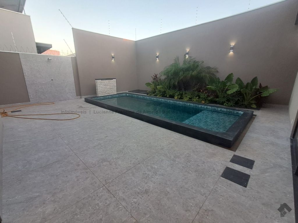 Alto padrão, área gourmet e piscina. Detalhes de decoração em todos os ambientes. Alto padrão de acabamento e projeto arquitetônico diferenciado. Ambientes aconchegantes e espaçosos. Espaço na frente para carro. Forro de gesso rebaixado e iluminação em LED. Todos os cômodos com iluminação natural e janelas grandes. Sala de estar com possibilidade de mesa de jantar. Cozinha espaçosa com saída para área de serviço. Suíte e quartos com espaço para cama e guarda-roupas. Área gourmet e piscina.